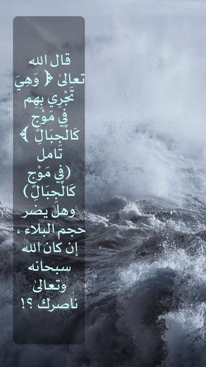 قال الله تعالى: ﴿وَهِيَ تَجْرِي بِهِمْ فِي مَوْجٍ كَالْجِبَالِ﴾ • تأمل فِي "مَوْجٍ كَالْجِبَالِ" وهل يضر حجم البلاء ، إن كان الله سبحانه وتعالى ناصرك ؟!