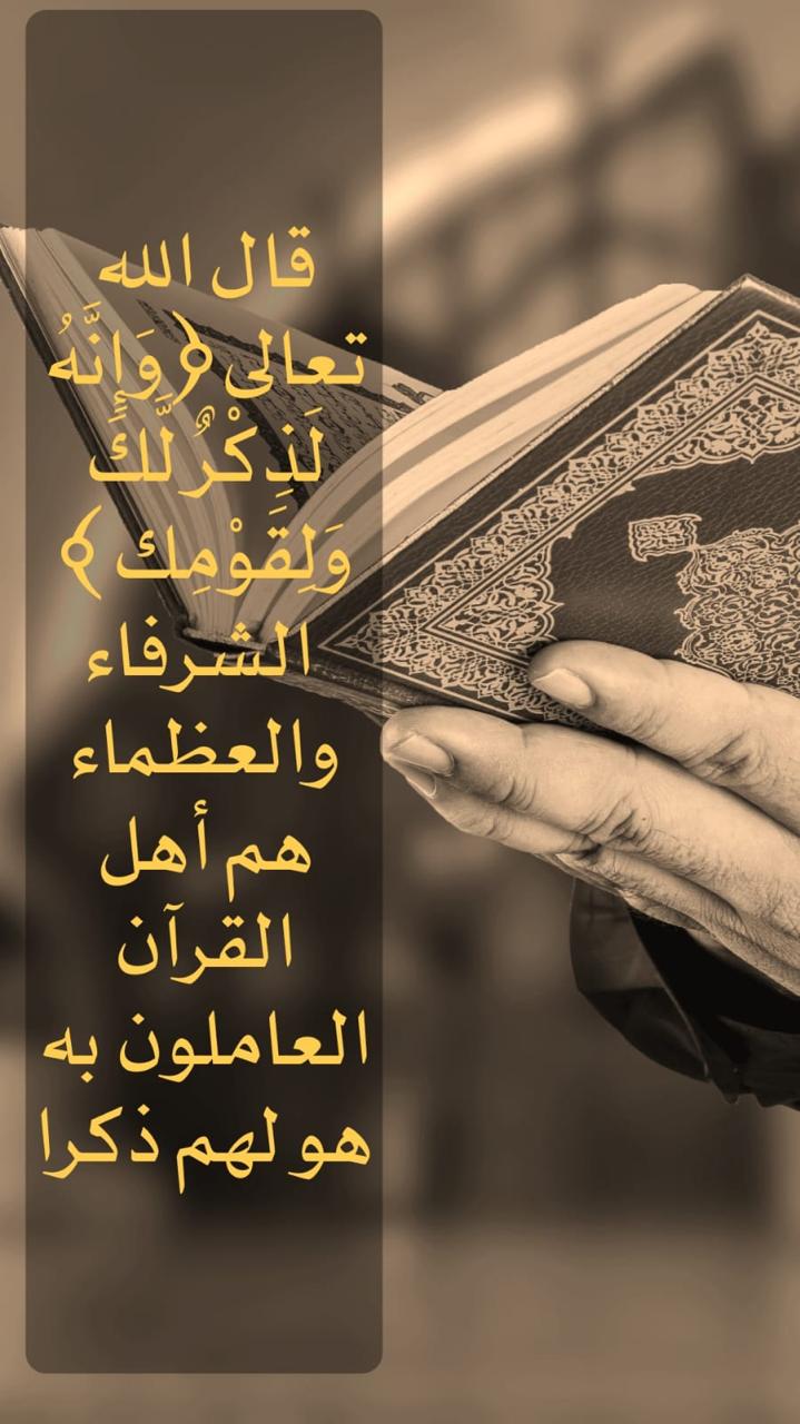 قال الله تعالى ( وَإِنَّهُ لَذِكْرُ لك وَلِقَوْمِكَ ) • الشرفاء والعظماء هم أهل القرآن العاملون به، هو لهم ذكرا.