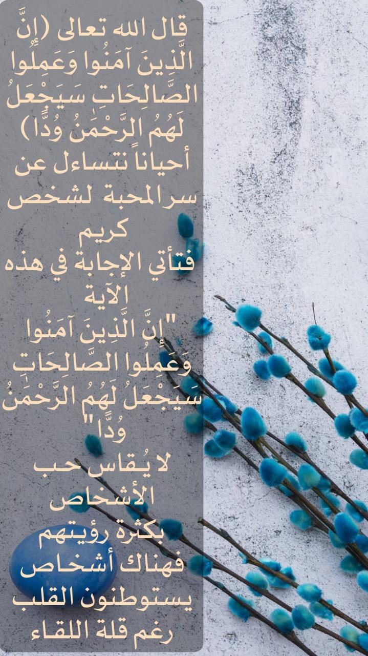قال الله تعالى: ﴿إِنَّ الَّذِينَ آمَنُوا وَعَمِلُوا الصَّالِحَاتِ سَيَجْعَلُ لَهُمُ الرَّحْمَنُ وُدًّا﴾ • أحيانا نتساءل عن سر المحبة لشخص كريم فتأتي الإجابة في في هذه الآية: "إِنَّ الَّذِينَ آمَنُوا ... المزيد