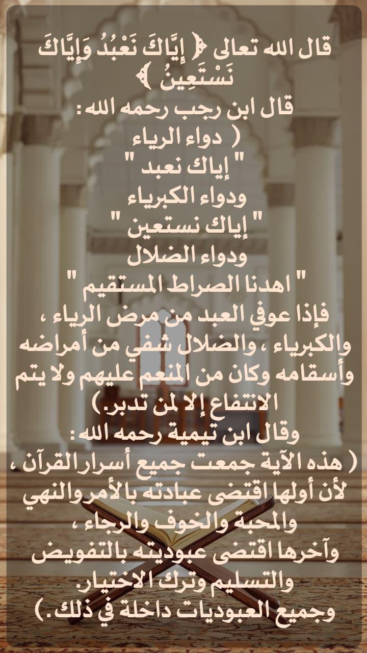 ﴿ إِيَّاكَ نَعْبُدُ وَإِيَّاكَ نَسْتَعِينُ ﴾
