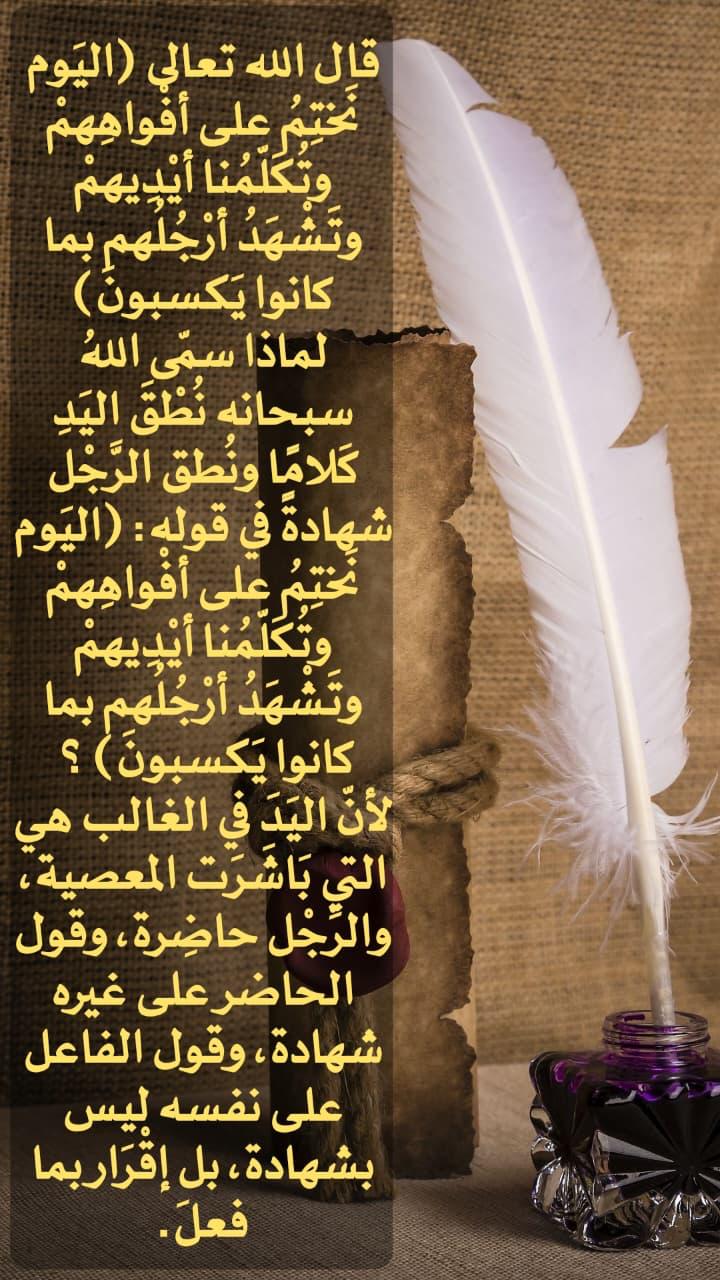 ﴿الْيَوْمَ نَخْتِمُ عَلَى أَفْوَاهِهِمْ وَتُكَلِّمُنَا أَيْدِيهِمْ وَتَشْهَدُ أَرْجُلُهُم بِمَا كَانُوا يَكْسِبُونَ﴾