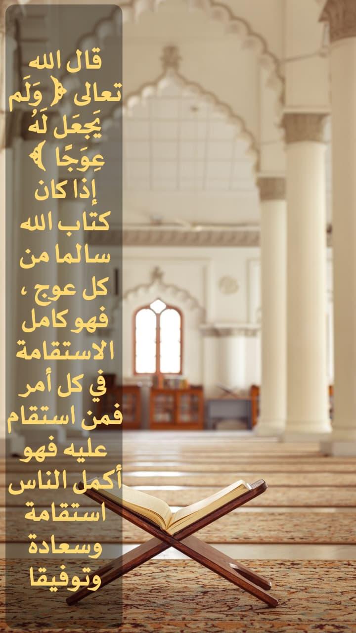 إذا كان كتاب الله سالما من كل عوج ، فهو كامل الاستقامة في كل أمر فمن استقام عليه فهو أكمل الناس استقامة وسعادة وتوفيقا.