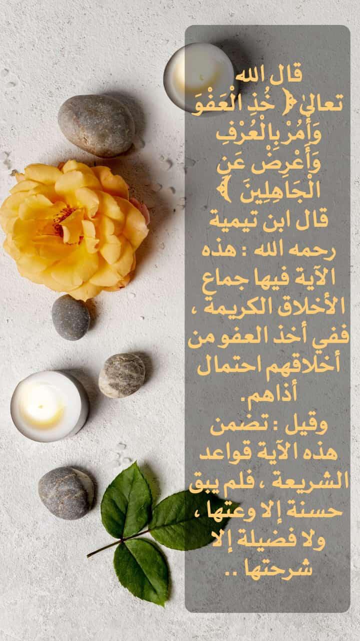 ﴿خُذِ الْعَفْوَ وَأْمُرْ بِالْعُرْفِ وَأَعْرِضْ عَنِ الْجَاهِلِينَ﴾