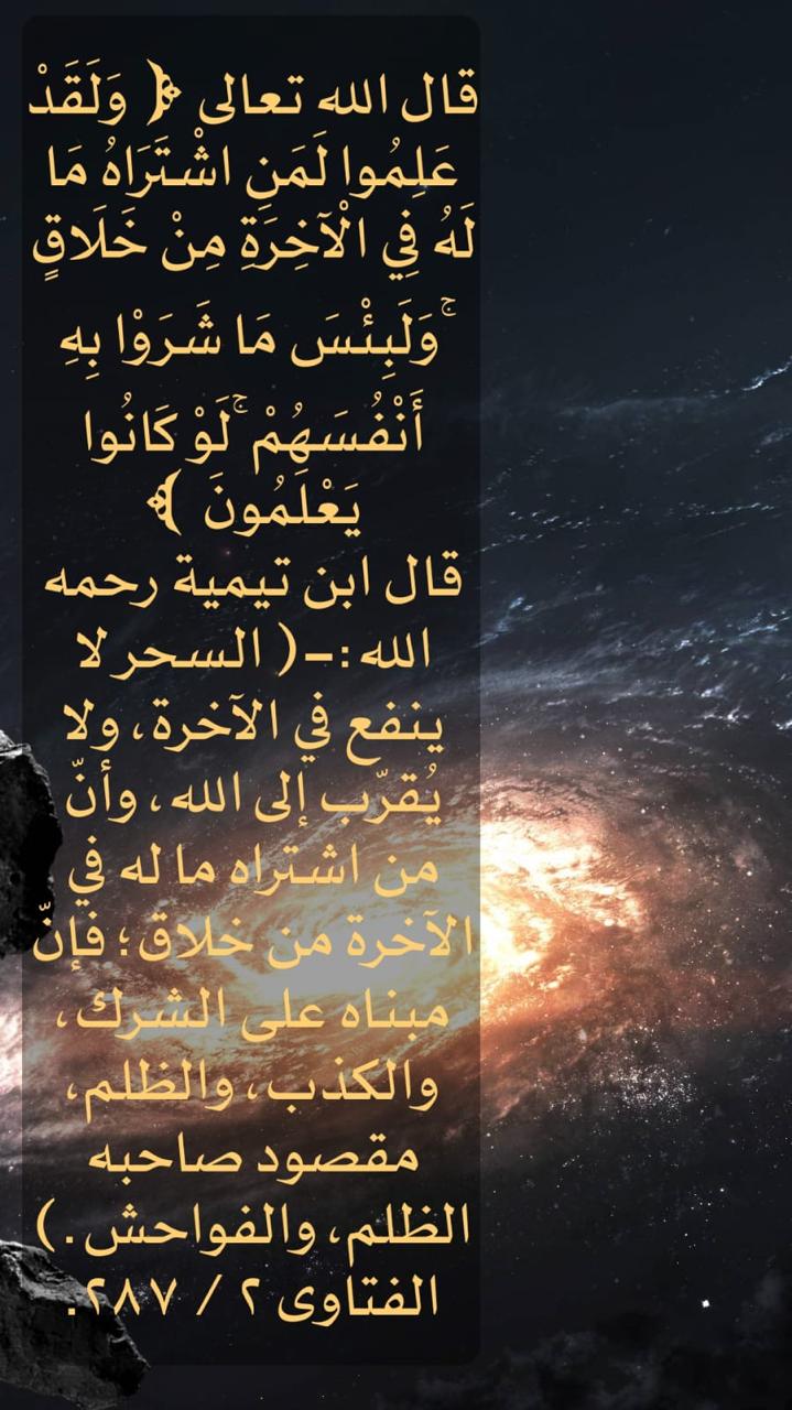قال الله تعالى ﴿وَلَقَدْ عَلِمُوا لَمَنِ اشْتَرَاهُ مَا لَهُ فِي الْآخِرَةِ مِنْ خَلَاقٍ وَلَبِئْسَ مَا شَرَوْا بِهِ أَنفُسَهُمْ لَوْ كَانُوا يَعْلَمُونَ﴾