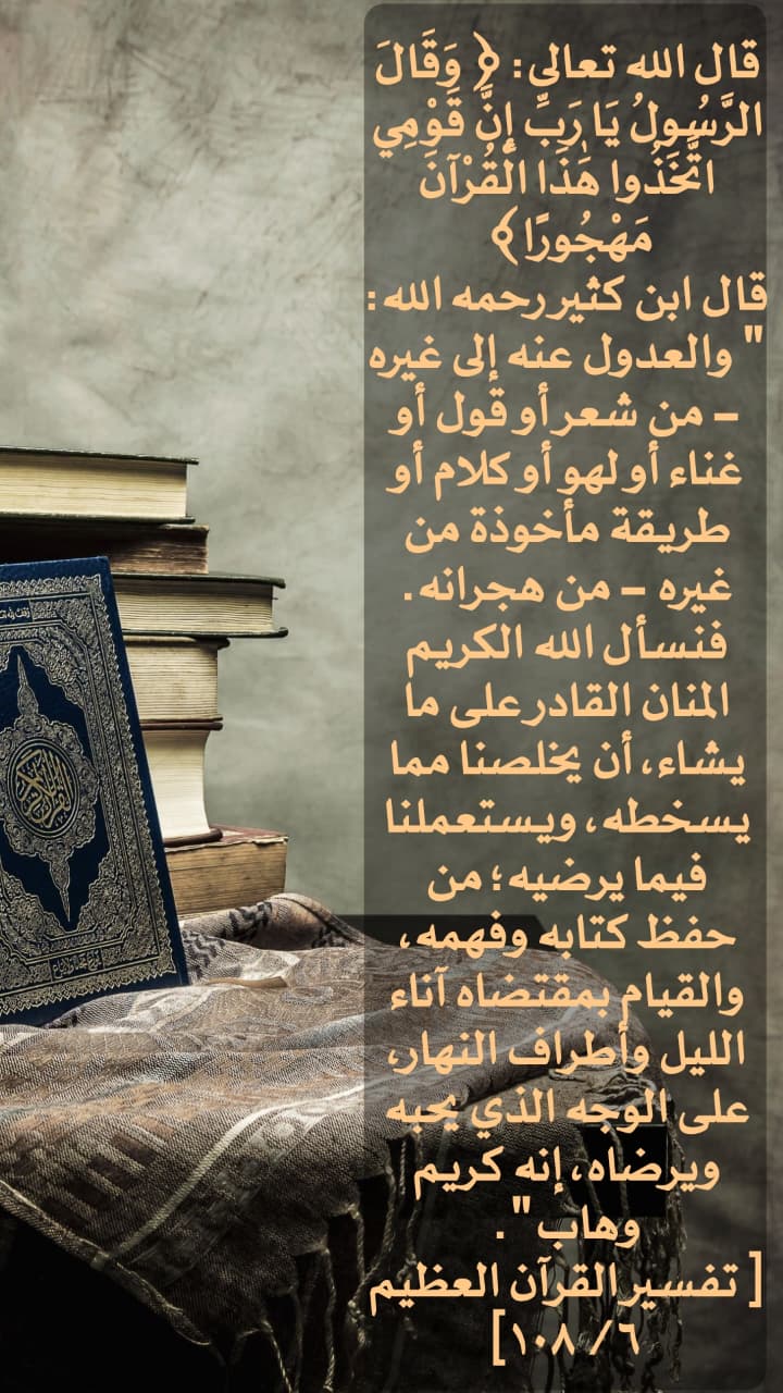 ﴿وَقَالَ الرَّسُولُ يَا رَبِّ إِنَّ قَوْمِي اتَّخَذُوا هَذَا الْقُرْآنَ مَهْجُورًا﴾