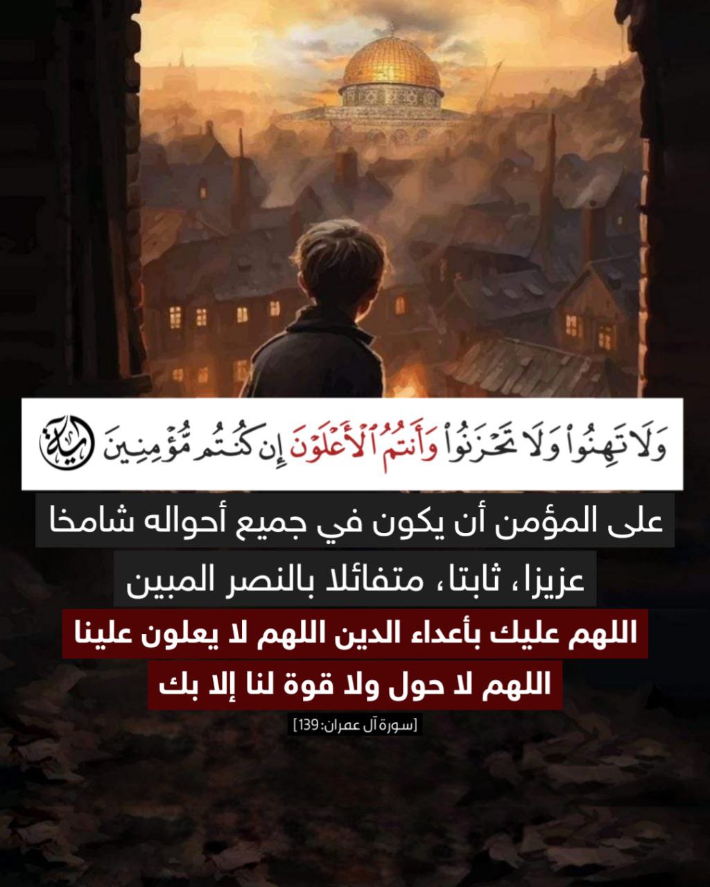 على المؤمن أن يكون في جميع أحواله شامخاً، عزيزًا، ثابتاً، متفائلاً بالنصر المبين، اللهم عليك بأعداء الدين اللهم لا يعلون علينا اللهم لا حول ولا قوة لنا إلا بك.