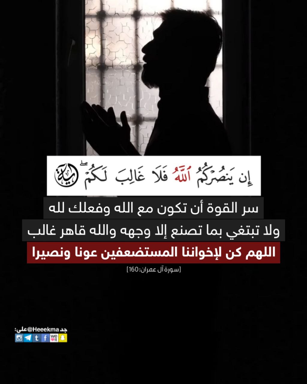 سر القوة أن تكون مع الله وفعلك لله ولا تبتغي بما تصنع إلا وجهه والله قاهر غالب .. اللهم كن لإخواننا المستضعفين عوناً ونصيراً.