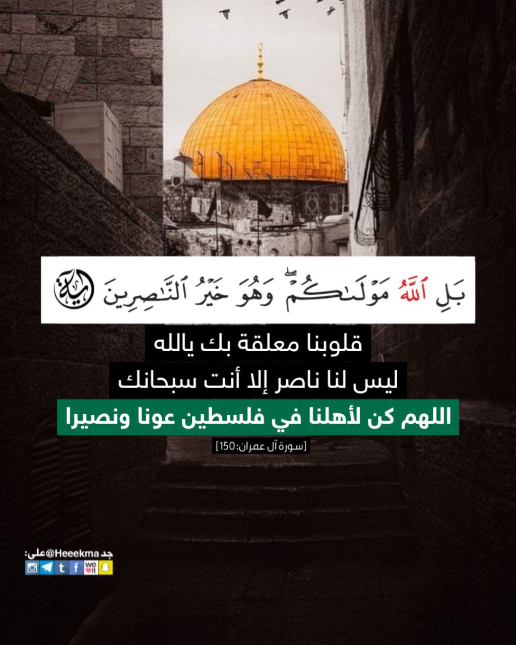 قلوبنا معلقةٌ بك يا الله .. ليس لنا ناصر إلا أنت سبحانك .. اللهم كن لأهلنا في فلسطين عونا ونصيرا.
