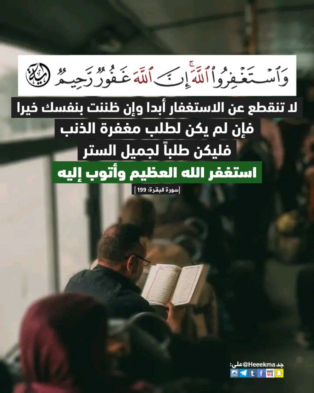 لا تنقطع عن الاستغفار أبداً وإن ظننت بنفسك خيراً، فإن لم يكن لطلب مغفرة الذنب، فليكن طلباً لجميل الستر، استغفر الله العظيم وأتوب إليه.