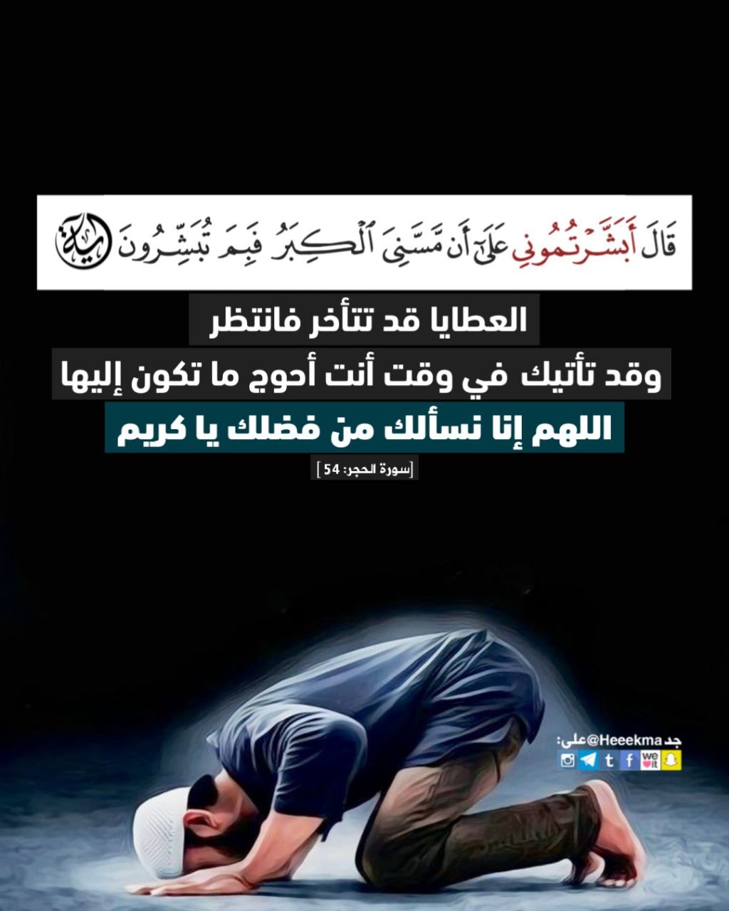العطايا قد تتأخر .. (فانتظر) .. وقد تأتيك في وقت أنت أحوج ما تكون إليها .. اللهم إنا نسألك من فضلك يا كريم.