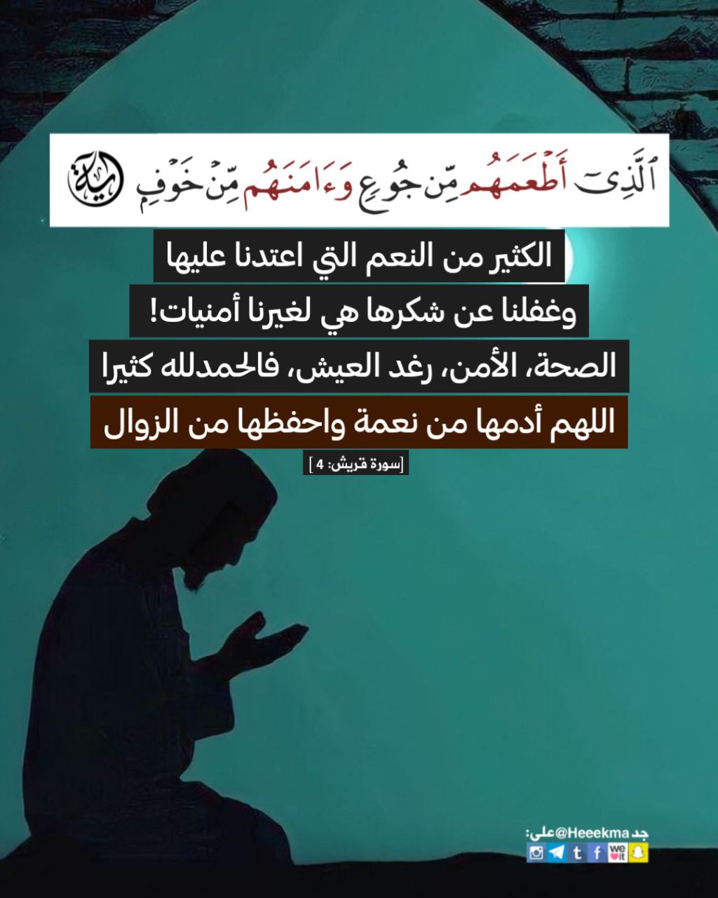 ﴿الَّذِي أَطْعَمَهُم مِّن جُوعٍ وَآمَنَهُم مِّنْ خَوْفٍ﴾
