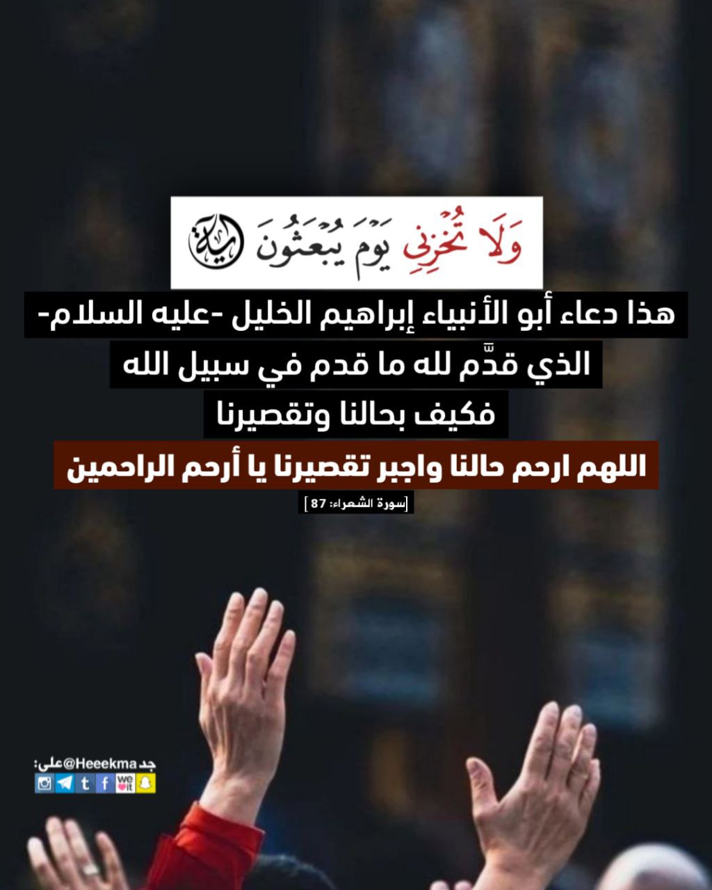 هذا دعاء أبو الأنبياء إبراهيم الخليل - عليه السلام - الذي قدَّم لله ما قدم في سبيل الله .. فكيف بحالنا وتقصيرنا .. اللهم ارحم حالنا واجبر تقصيرنا يا أرحم الراحمين.