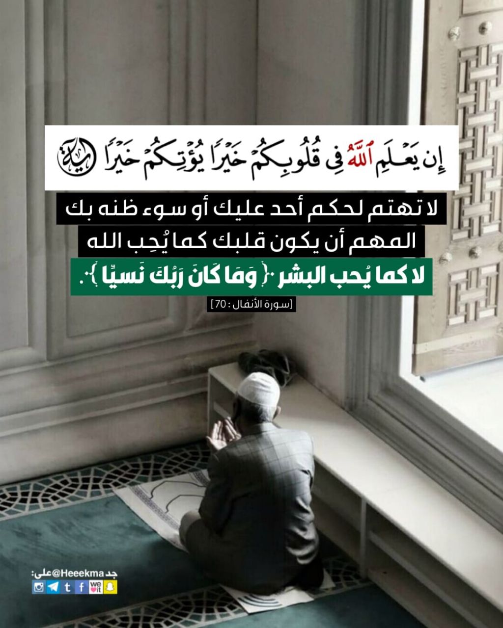 لا تهتم لحكم أحد عليك أو سوء ظنه بك .. المهم أن يكون قلبك كما يُحِب الله لا كما يُحب البشر .. ﴿وَمَا كَانَ رَبُكَ نَسيِّا﴾.