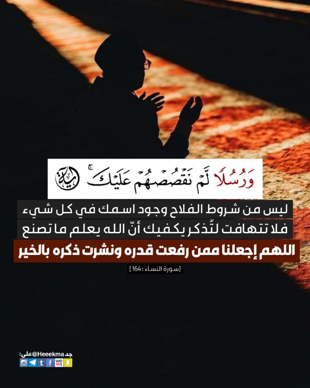 ليس من شروط الفلاح وجود اسمك في كل شيء، فلا تتهافت لتُذكر، يكفيك أنّ الله يعلم ما تصنع، اللهم اجعلنا ممن رفعت قدره ونشرت ذكره بالخير.