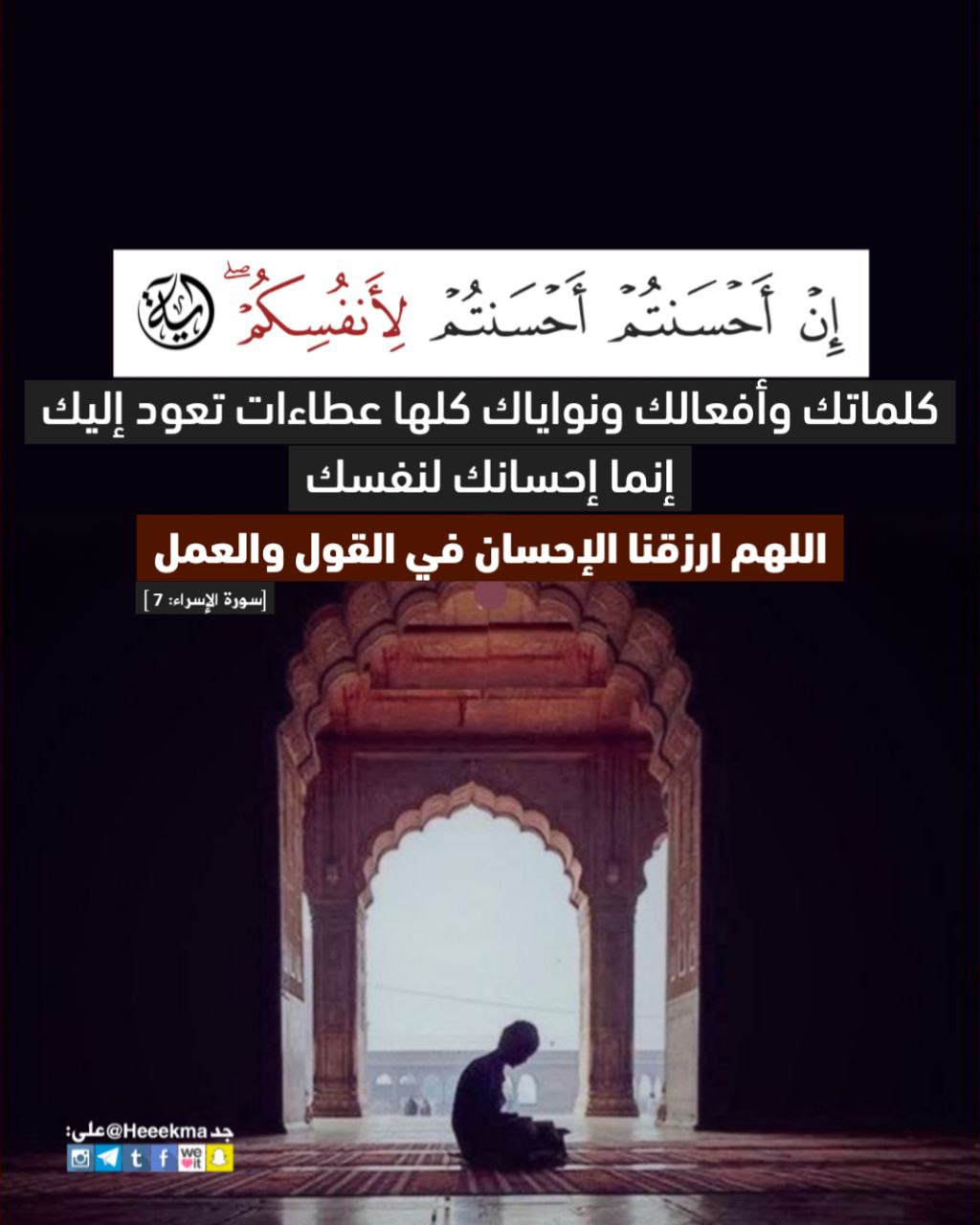 كلماتك وأفعالك ونواياك كلها عطاءات تعود إليك، إنما إحسانك لنفسك، اللهم ارزقنا الإحسان في القول والعمل.
