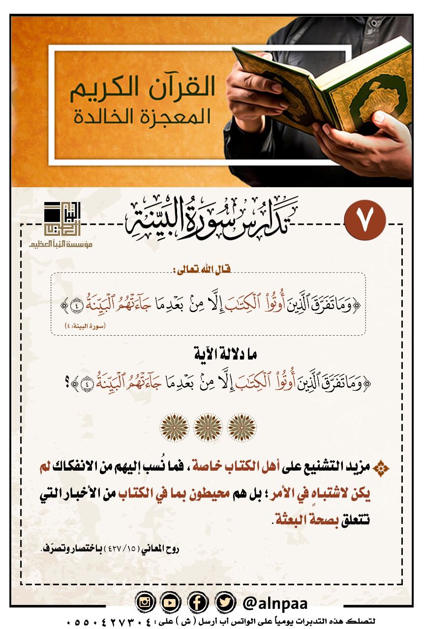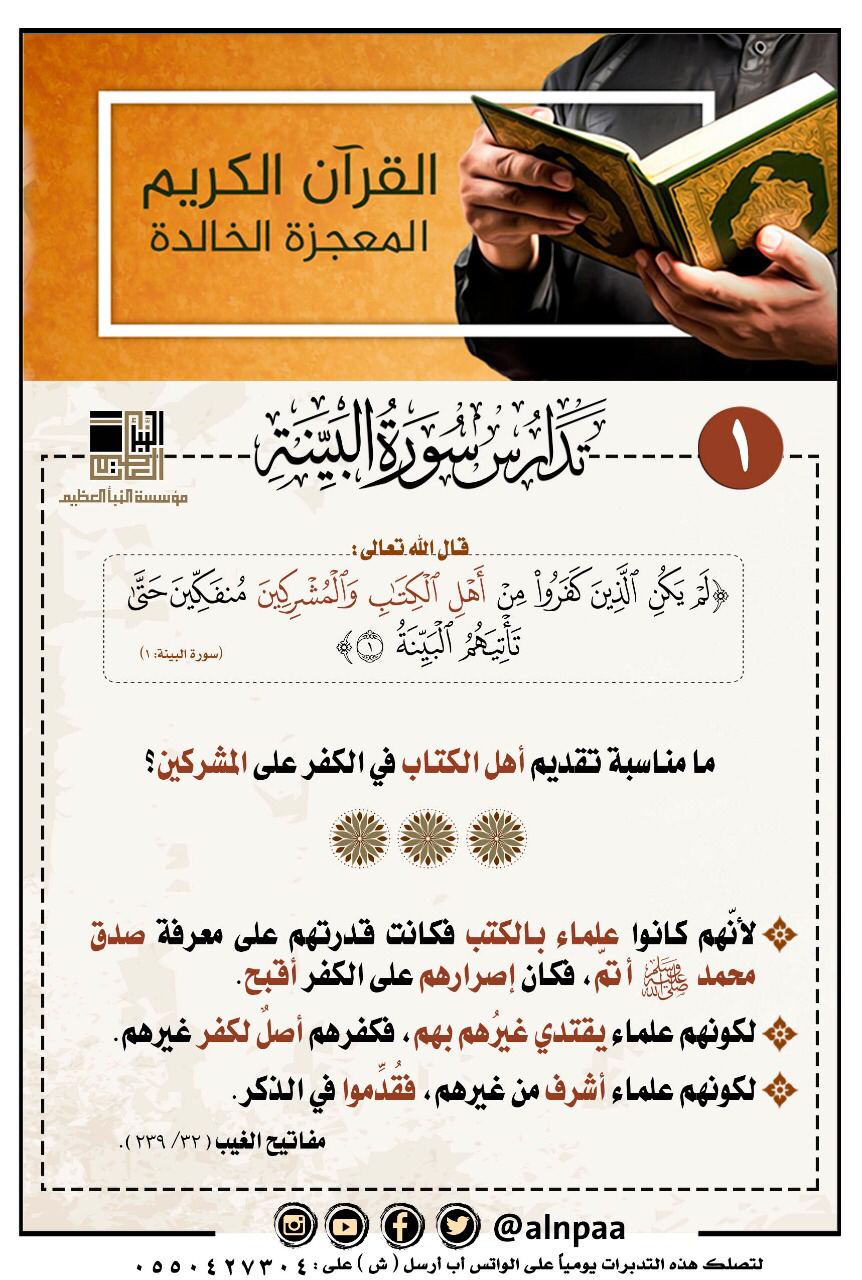 لَمْ يَكُنِ الَّذِينَ كَفَرُوا مِنْ أَهْلِ الْكِتَابِ وَالْمُشْرِكِينَ مُنفَكِينَ حَتَّى تَأْتِيَهُمُ الْبَيِّنَةُ )