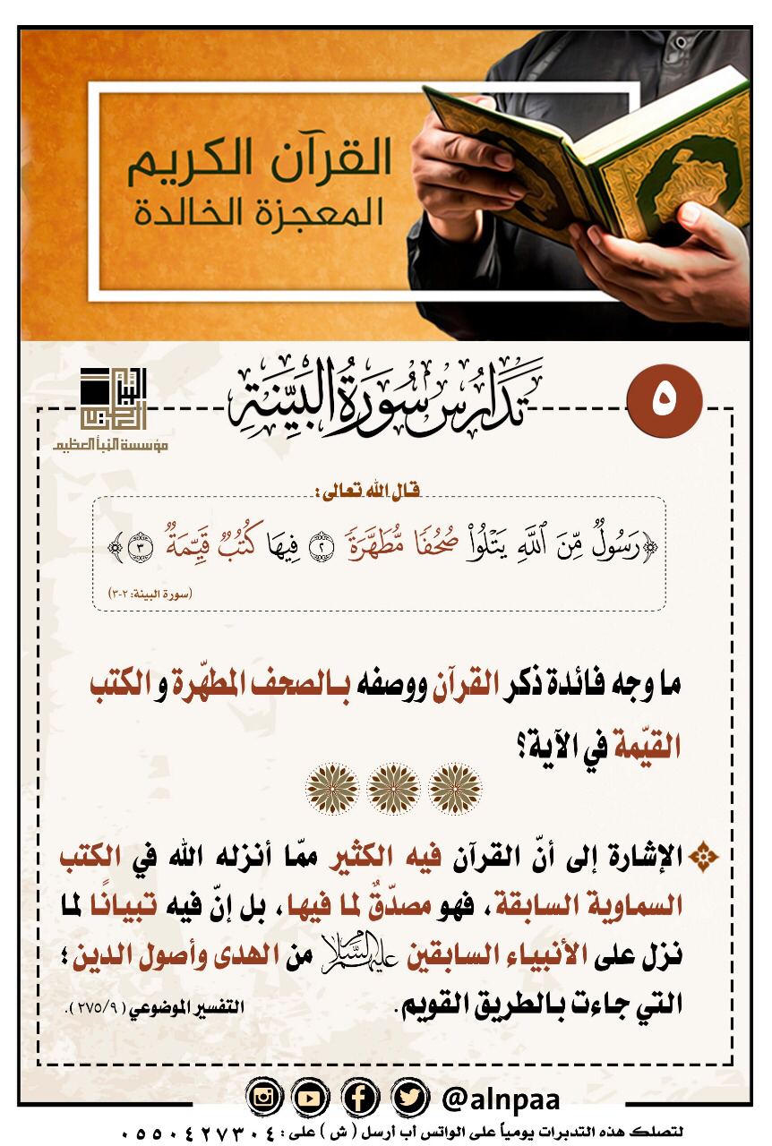رَسُولٌ مِّنَ اللَّهِ يَتْلُوا صُحُفًا مُطَهَّرَةً فِيهَا كُتُبُ قَيِّمَةٌ ))(سورة البينة : ٣٠٢)
