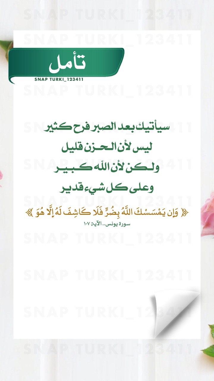 سيأتيك بعد الصبر فرح كثير ليس لأن الحزن قليل، ولكن لأن الله كبير وعلى كل شيء قدير.