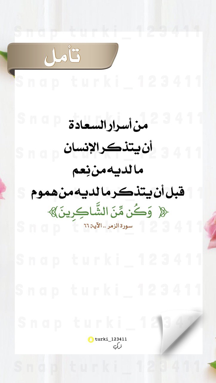 من أسرار السعادة أن يتذكر الإنسان ما لديه من نِعم قبل أن يتذكر ما لديه من هموم.
