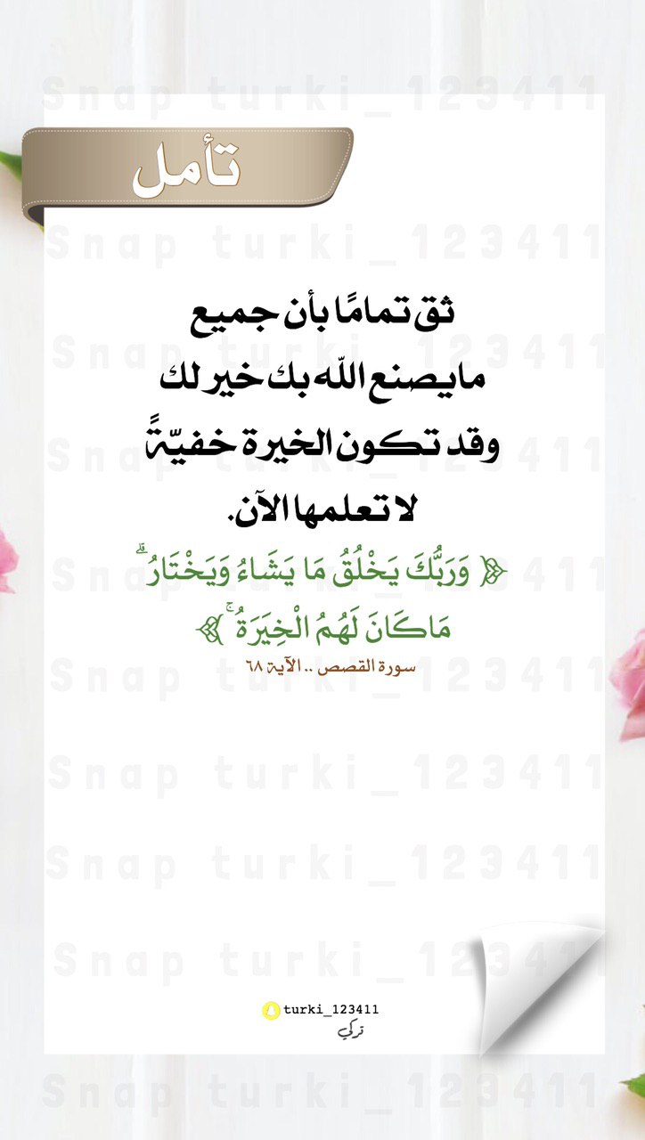 ثق تمامًا بأن جميع ما يصنع الله بك خير لك، وقد تكون الخيرة خفيّةً لا تعلمها الآن.