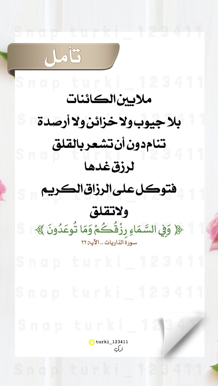 ملايين الكائنات بلا جيوب ولا خزائن ولا أرصدة تنام دون أن تشعر بالقلق لرزق غدها فتوكل على الرزاق الكريم ولا تقلق.
