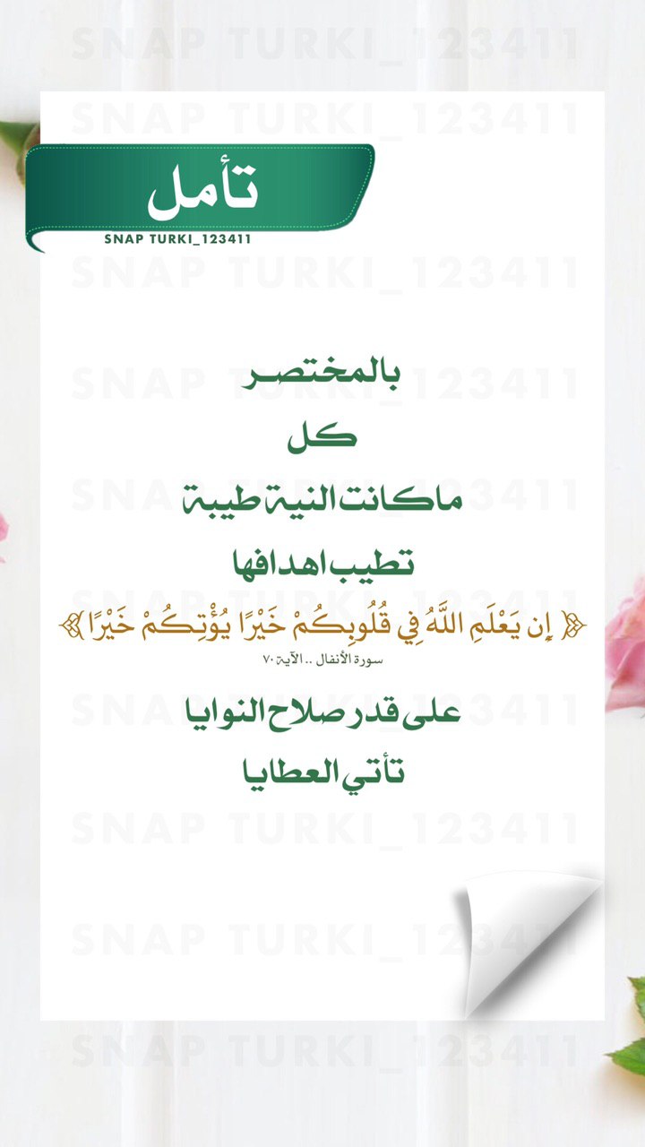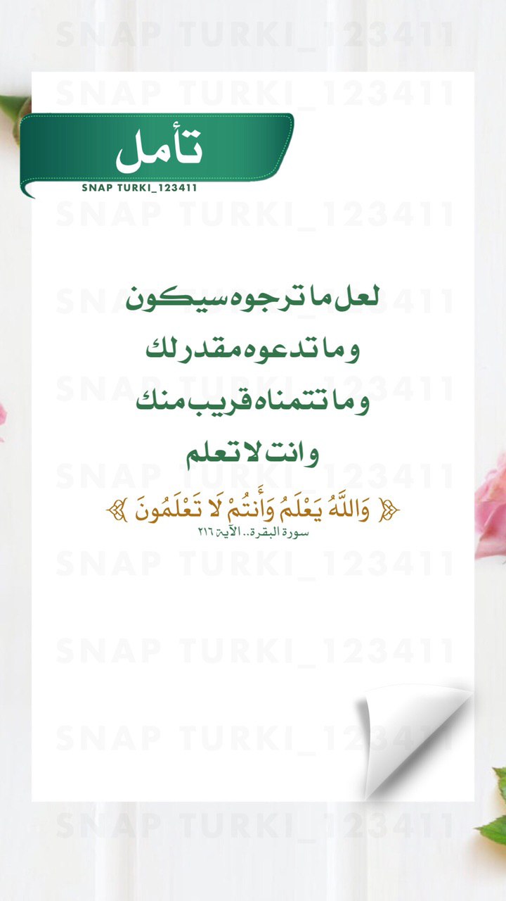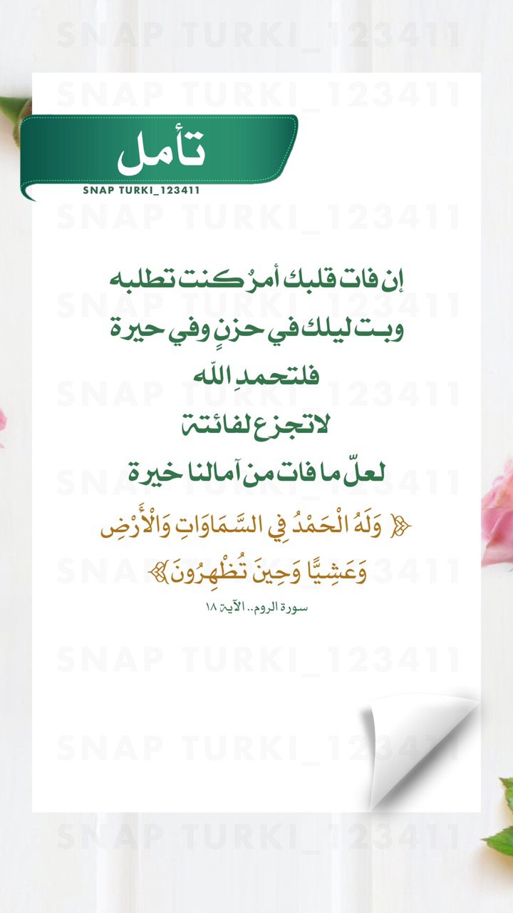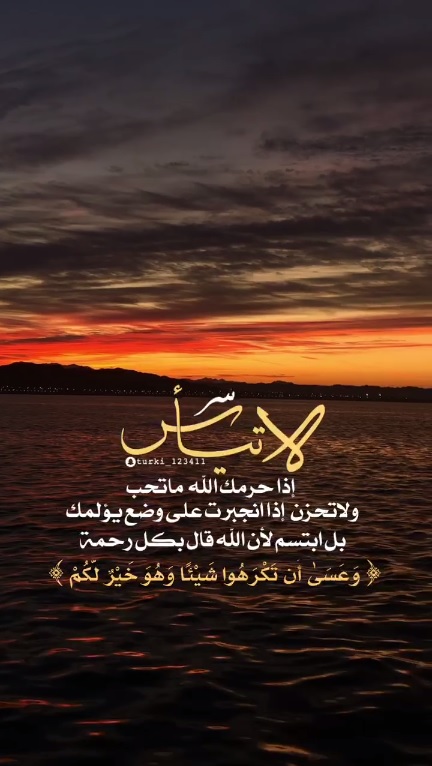 لا تيأس إذا حرمك الله ما تحب، ولا تحزن إذا انجبرت على وضع يؤلمك، ابل ابتسم لأن الله قال بكل رحمة ﴿وَعَسَى أَن تَكْرَهُوا شَيْئًا وَهُوَ خَيْرٌ لَّكُمْ﴾.