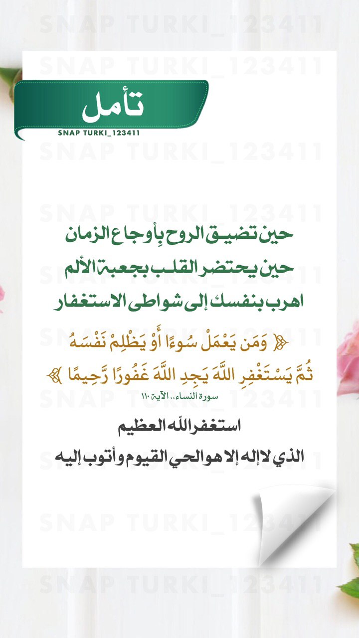 حين تضيق الروح بِأوجاع الزمان، حين يحتضر القلب بجعبة الألم، اهرب بنفسك إلى شواطى الاستغفار، استغفر الله العظيم الذي لا إله إلا هو الحي القيوم وأتوب إليه.