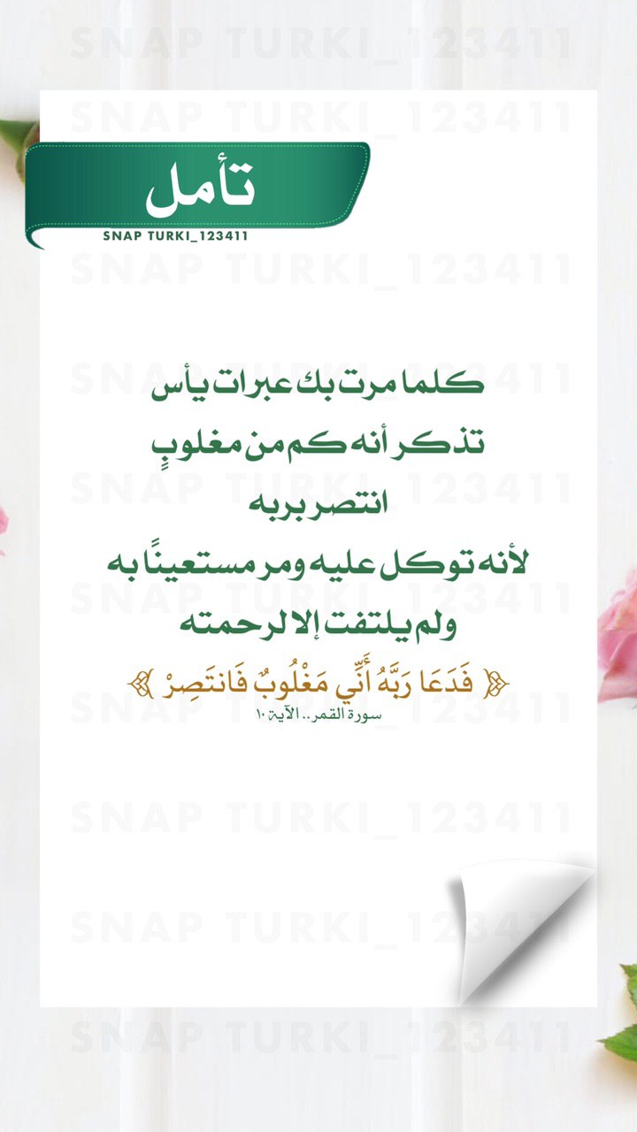 كلما مرت بك عبرات يأس، تذكر أنه كم من مغلوبٍ انتصر بربه لأنه توكل عليه ومر مستعينًا به، ولم يلتفت إلا لرحمته.