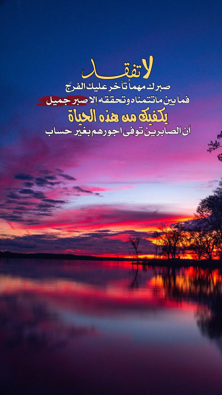 لا تفقد صبرك مهماً تأخر عليك الفرج، فما بين ما تتمناه وتحققه إلا صبر جميل، يكفيك من هذه الحياة أن الصابرين توفى اجورهم بغير حساب.
