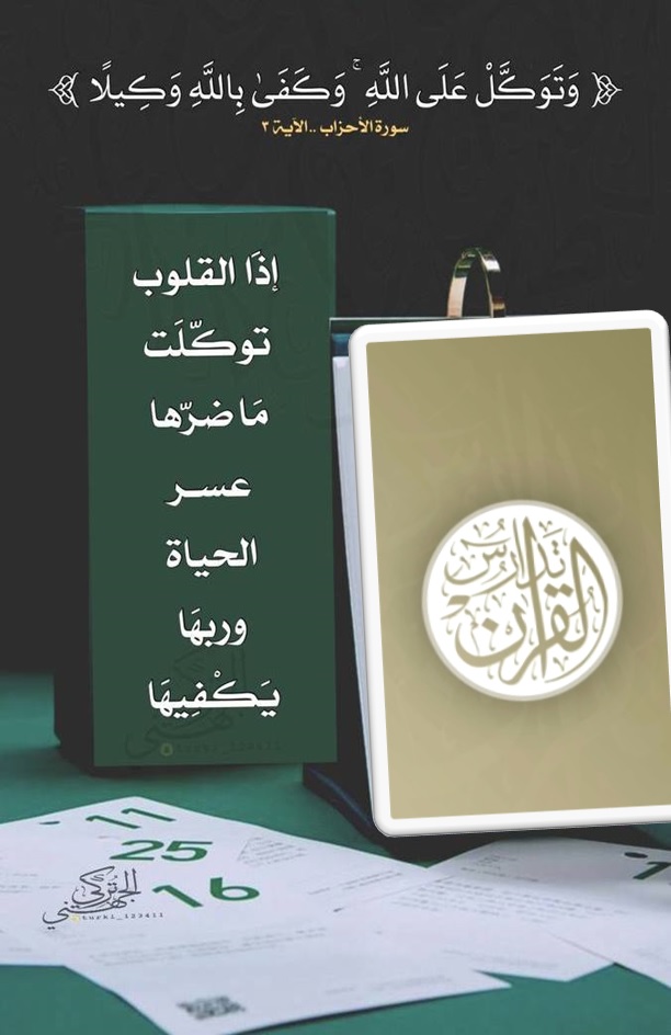 إذَا القلوب توكّلَت مَا ضرّها عسر الحياة وربهَا يَكْفِيهَا.