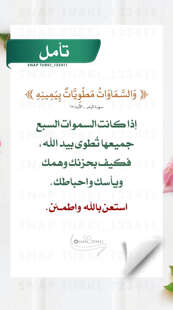 إذا كانت السموات السبع جميعها تُطوى بيد الله، فكيف بحزنك وهمك ويأسك واحباطك .. استعن بالله واطمئن.