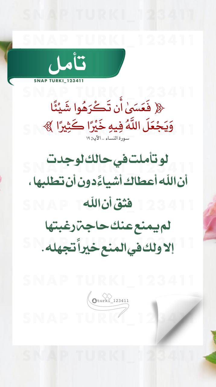 ﴿فَعَسَى أَن تَكْرَهُوا شَيْئًا وَيَجْعَلَ اللَّهُ فِيهِ خَيْرًا كَثِيرًا﴾
