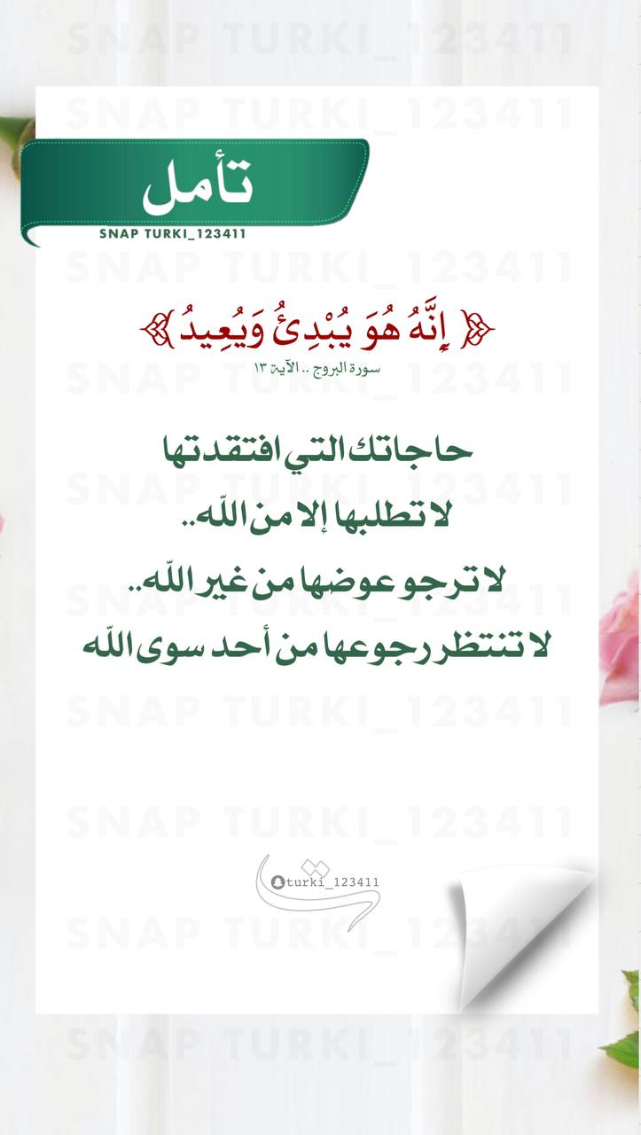 حاجاتك التي افتقدتها لا تطلبها إلا من الله .. لا ترجو عوضها من غير الله .. لا تنتظر رجوعها من أحد سوى الله.