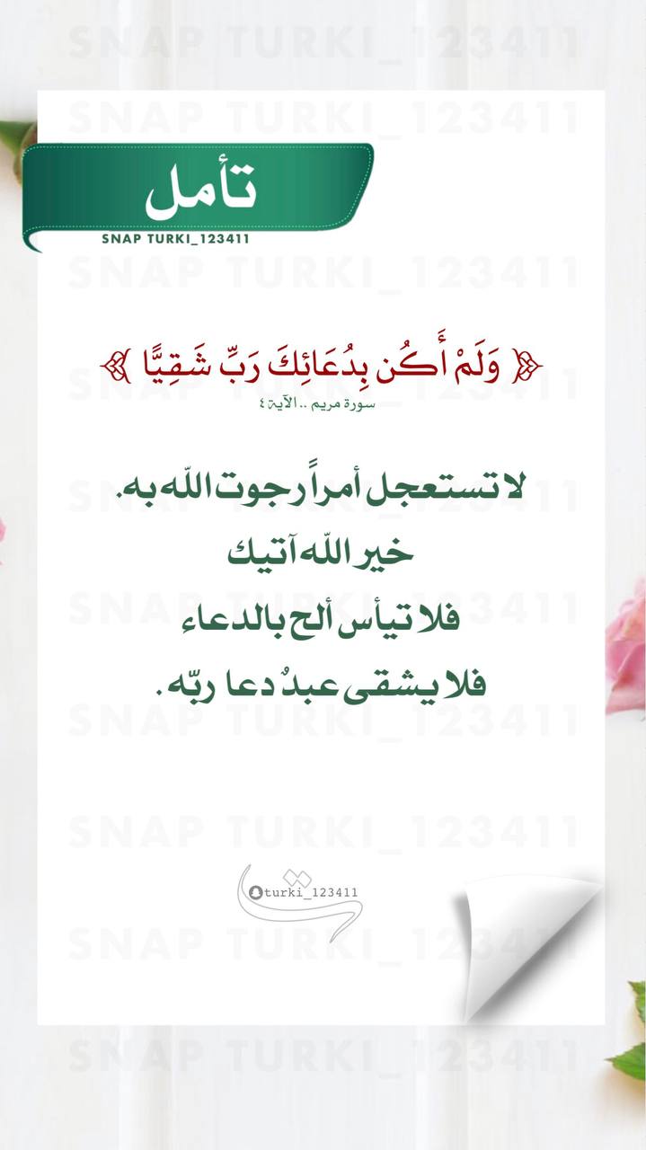 لا تستعجل أمراً رجوت الله به، خير الله آتيك فلا تيأس ألح بالدعاء، فلا يشقى عبد دعا ربّه.