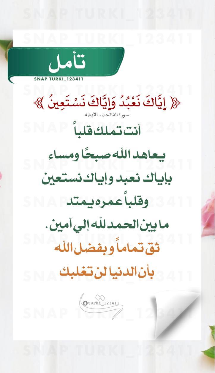 أنت تملك قلباً يعاهد الله صبحاً ومساء بإياك نعبد وإياك نستعين وقلباً عمره يمتد ما بين الحمدلله إلي آمين. ثق تماماً وبفضل الله بأن الدنيا لن تغلبك.
