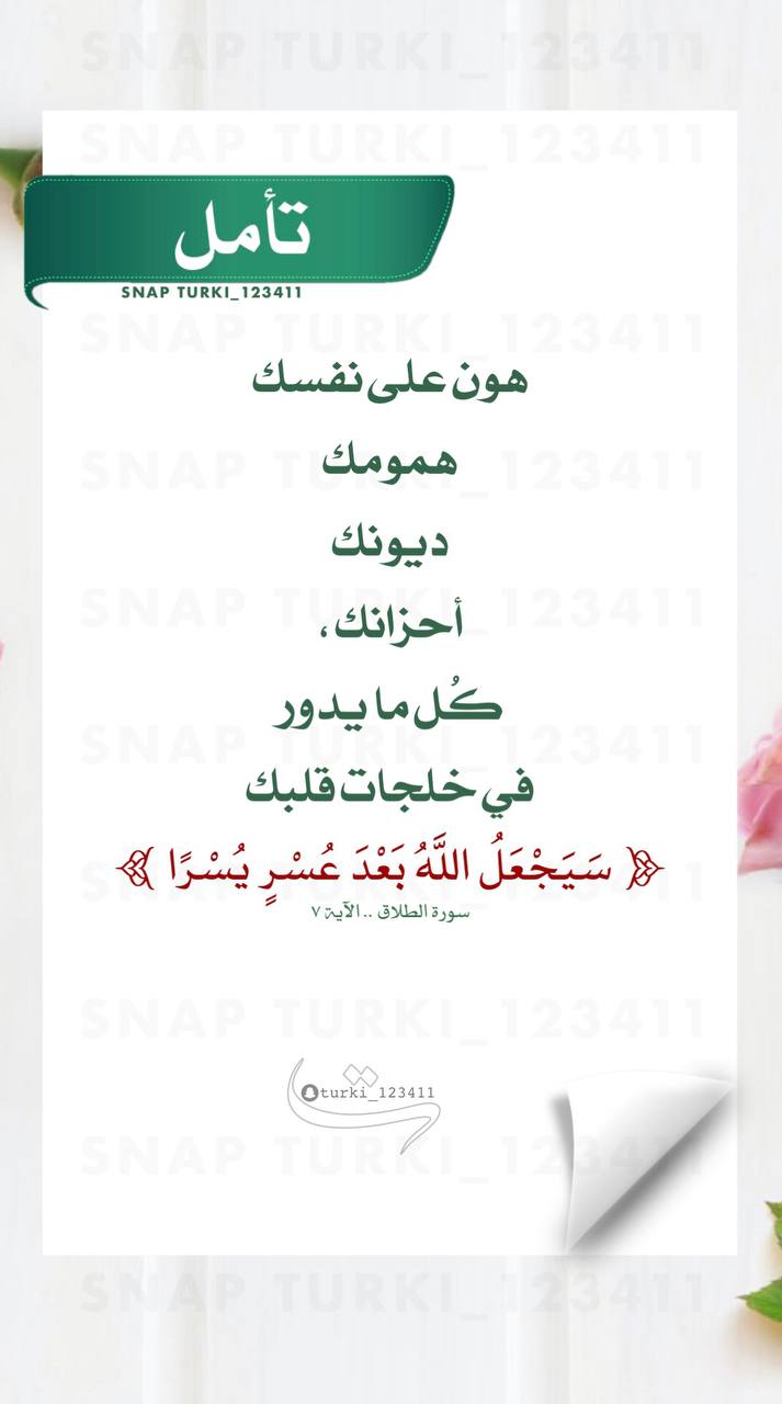 هون على نفسك .. همومك، ديونك، أحزانك، كُل ما يدور في خلجات قلبك ﴿سَيَجْعَلُ اللَّهُ بَعْدَ عُسْرٍ يُسْرًا﴾.