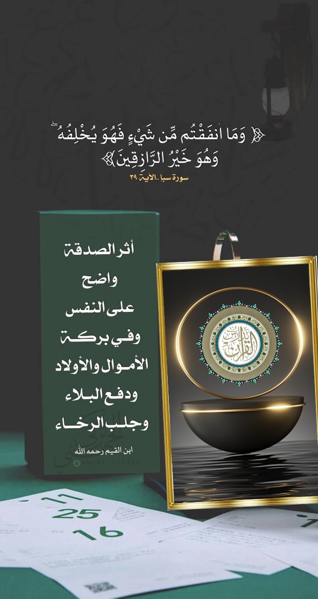 • أثر الصدقة واضح على النفس وفـي بركة الأموال والأولاد ودفع البـلاء وجلب الرخاء .. (ابن القيم رحمه الله).