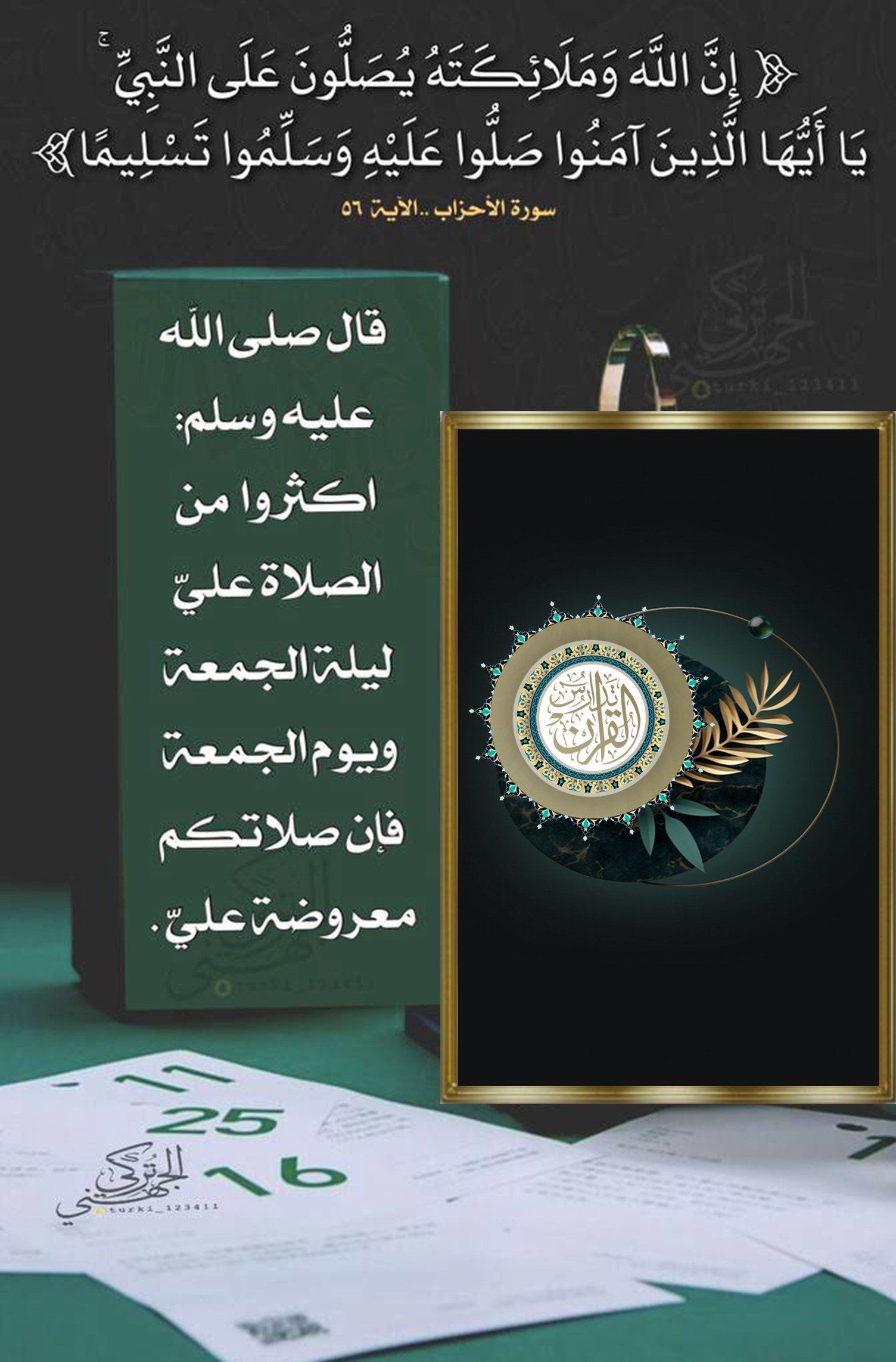 ﴿إِنَّ اللَّهَ وَمَلَائِكَتَهُ يُصَلُّونَ عَلَى النَّبِيِّ يَا أَيُّهَا الَّذِينَ آمَنُوا صَلُّوا عَلَيْهِ وَسَلِّمُوا تَسْلِيمًا﴾:
