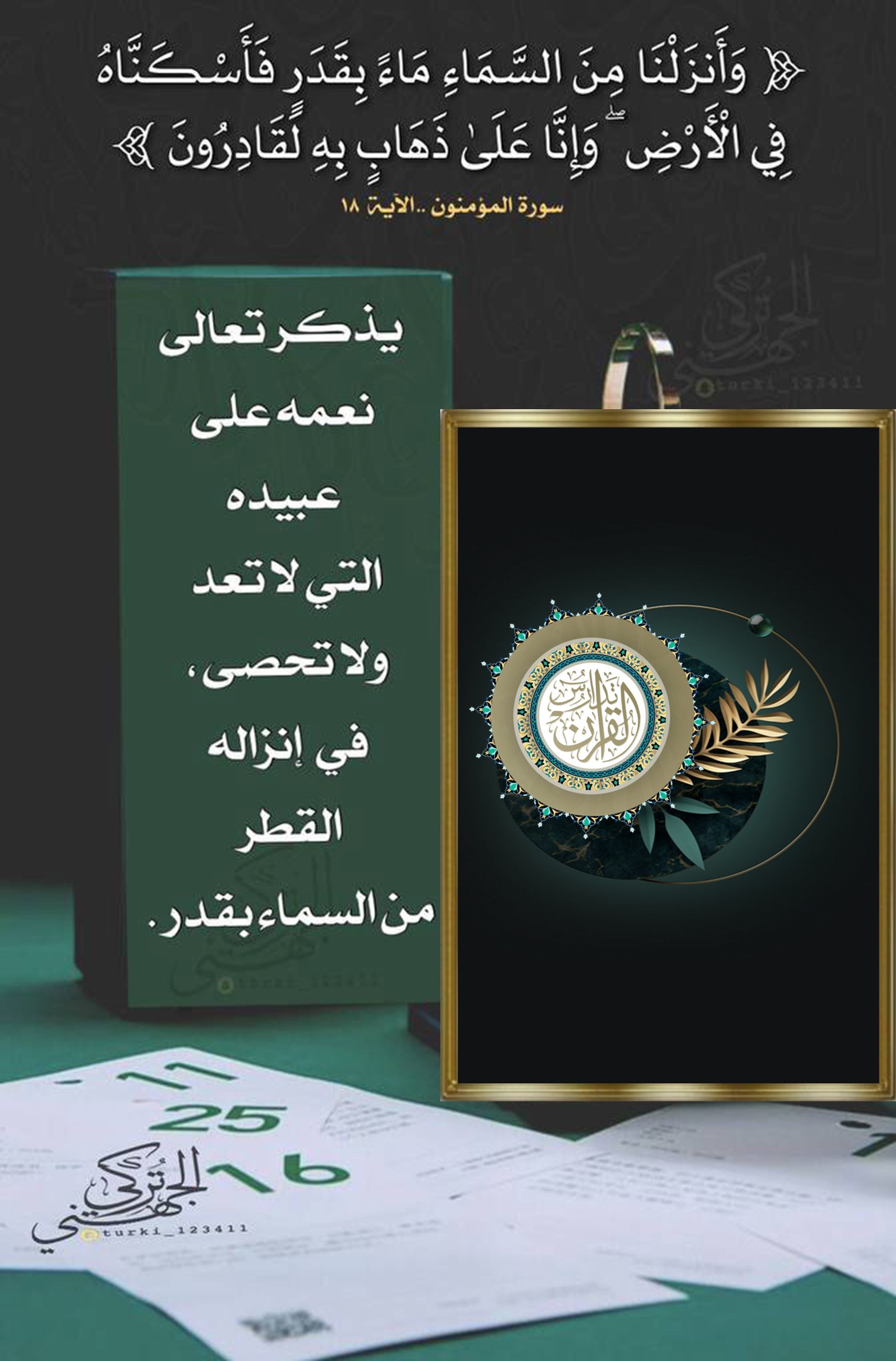 ﴿وَأَنزَلْنَا مِنَ السَّمَاءِ مَاءً بِقَدَرٍ فَأَسْكَنَّاهُ فِي الْأَرْضِ وَإِنَّا عَلَى ذَهَابٍ بِهِ لَقَادِرُونَ﴾: