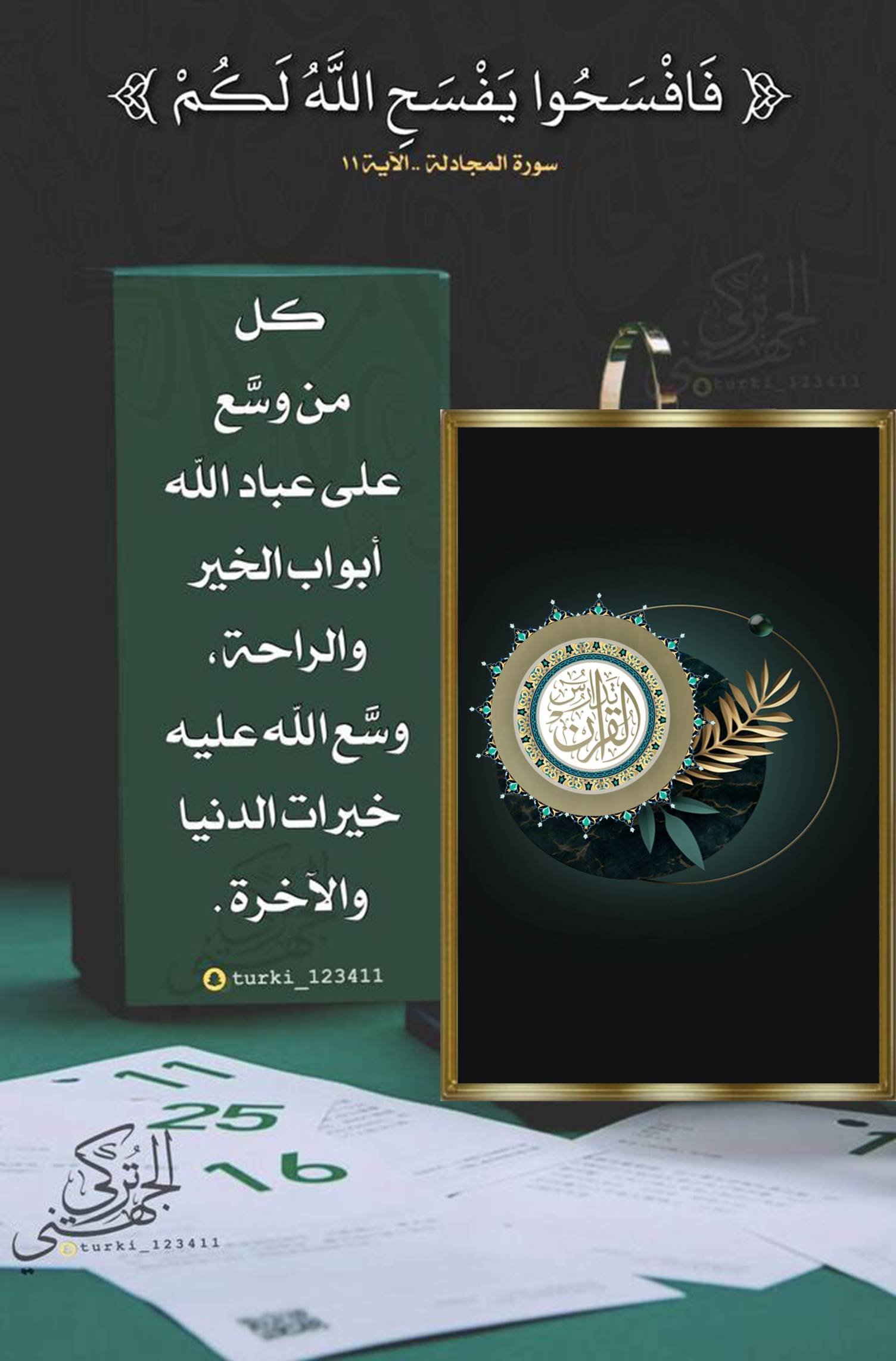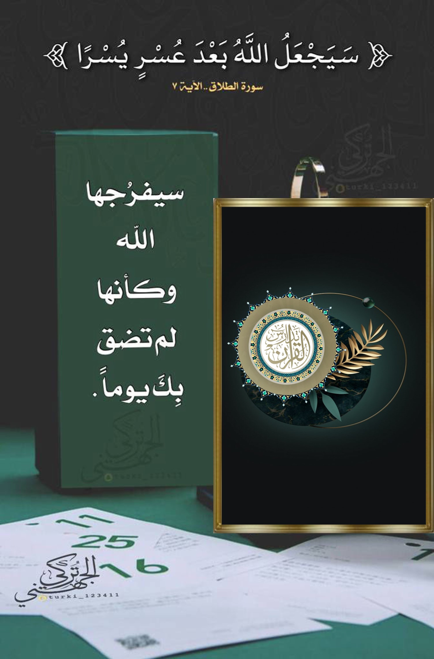 • ﴿سَيَجْعَلُ اللَّهُ بَعْدَ عُسْرٍ يُسْرًا﴾: سيفرُجها الله وكأنها لم تضق بِكَ يوماً.