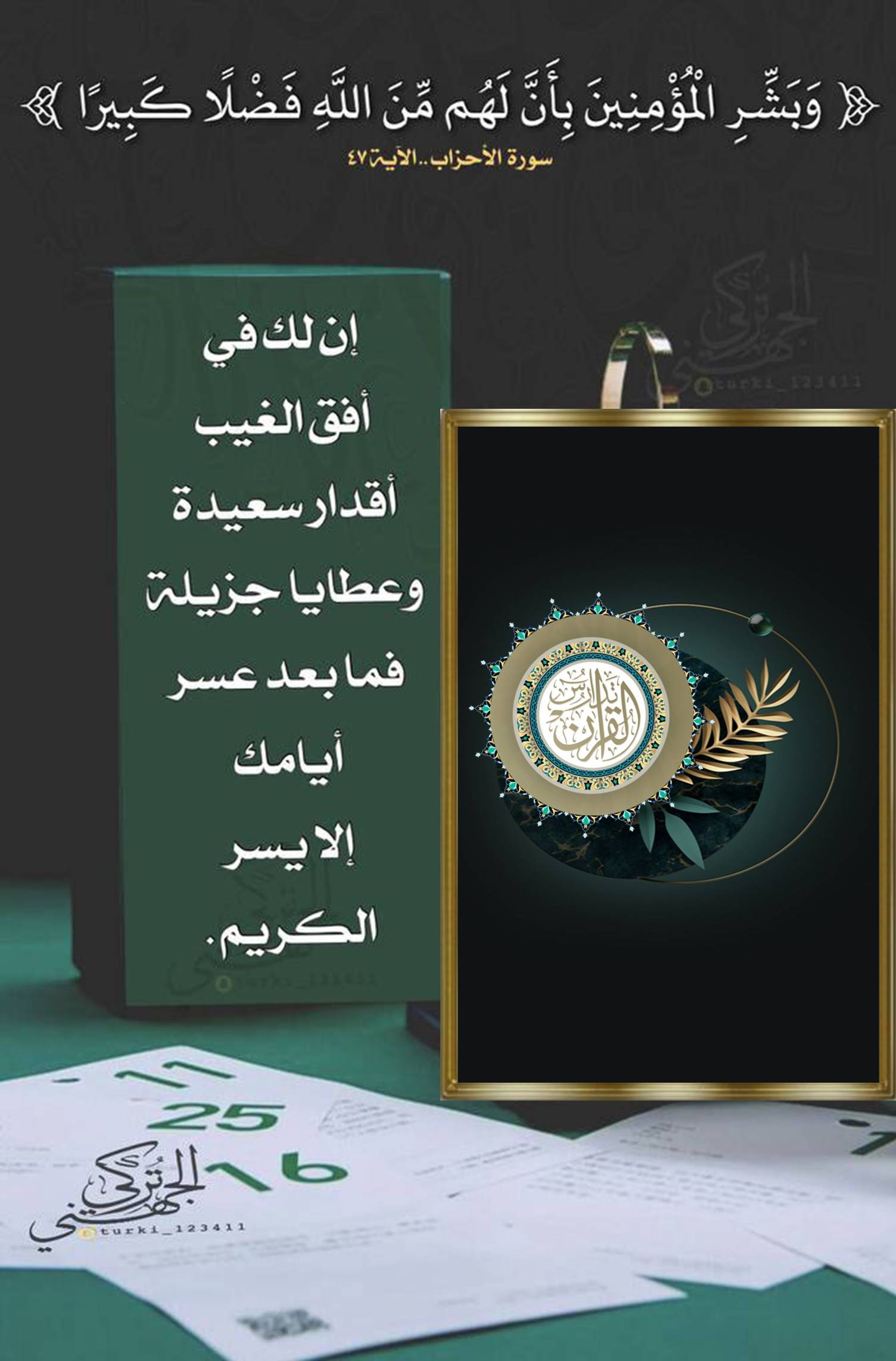 إن لك في أفق الغيب أقدار سعيدة وعطايا جزيلة فما بعد عسر أيامك إلا يسر الكريم. فأبشروا.