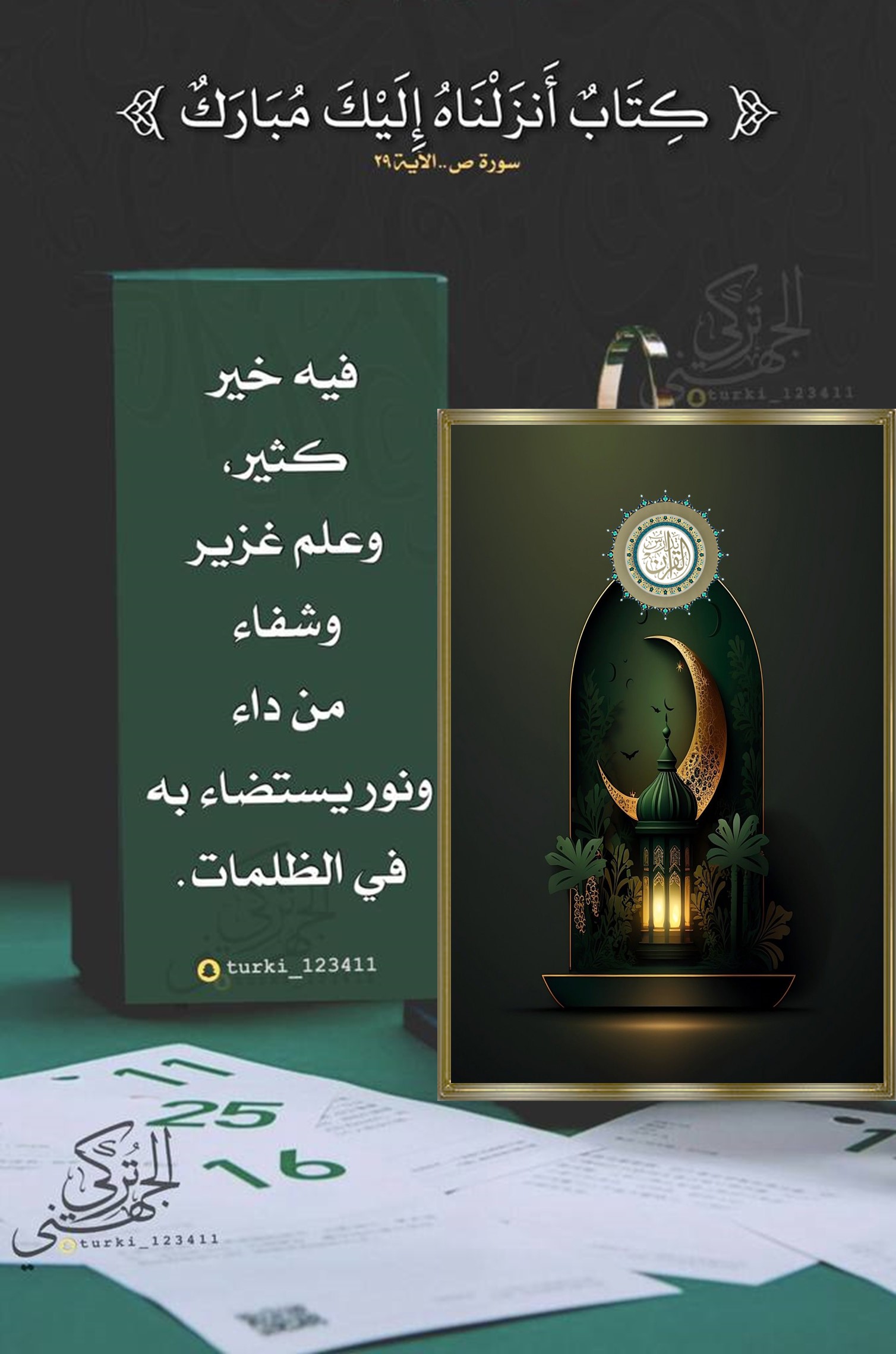 ﴿ كِتَابٌ أَنزَلْنَاهُ إِلَيْكَ مُبَارَكٌ لِّيَدَّبَّرُوا آيَاتِهِ وَلِيَتَذَكَّرَ أُولُو الْأَلْبَابِ ﴿٢٩﴾ ﴾
