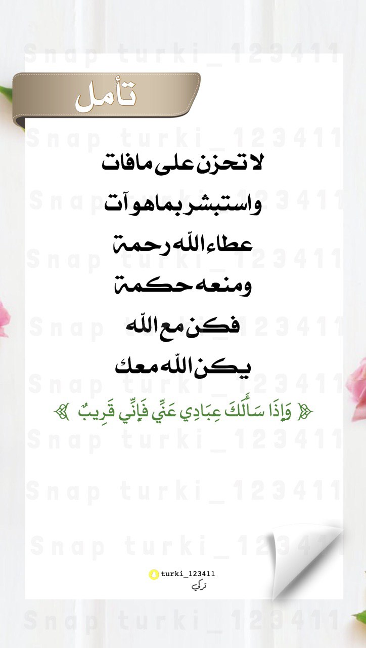 لا تحزن على ما فات واستبشر بما هو آت، عطاء الله رحمة ومنعه حكمة، فكن مع الله يكن الله معك.