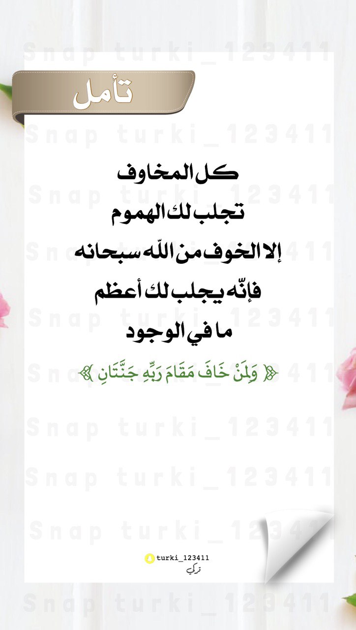 كل المخاوف تجلب لك الهموم إلا الخوف من الله سبحانه فإنّه يجلب لك أعظم ما في الوجود.