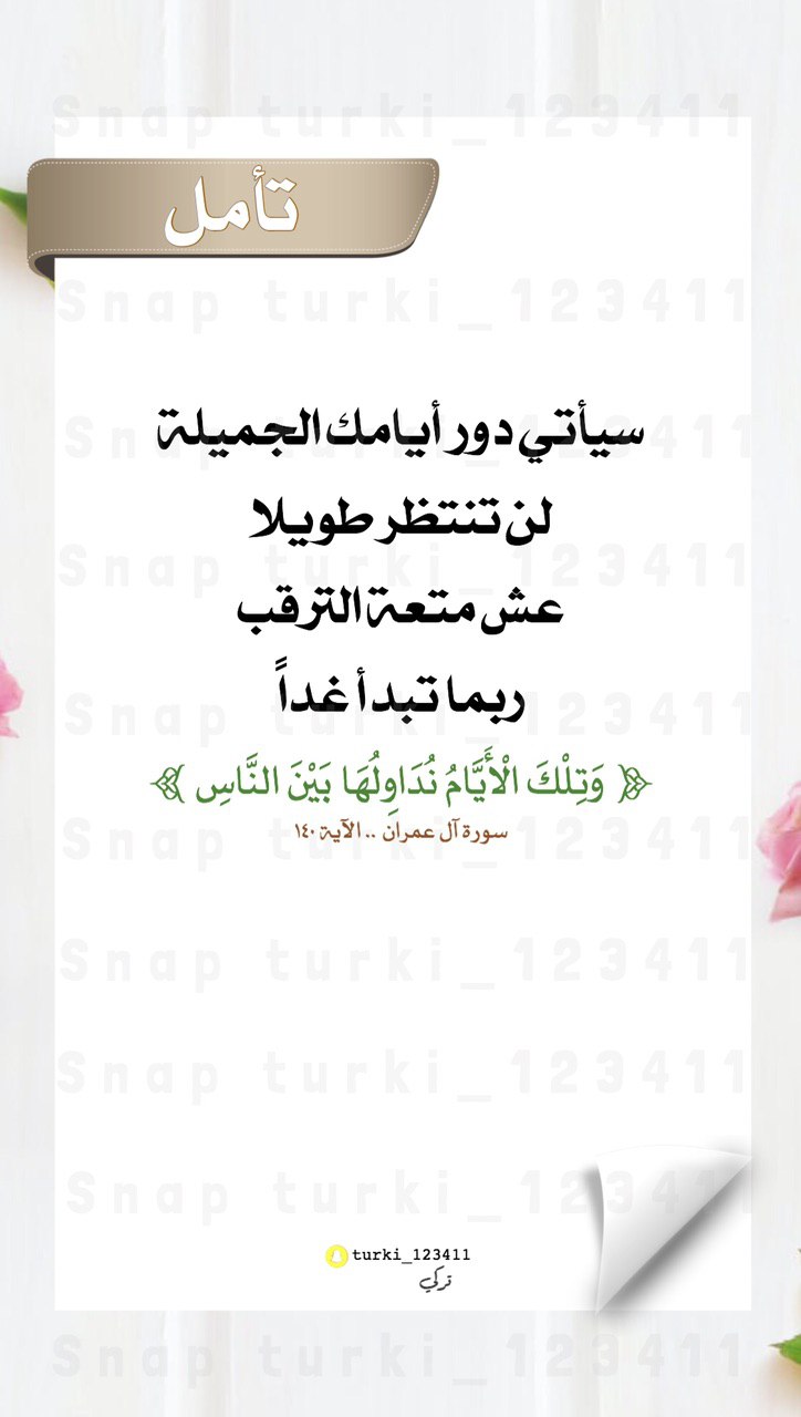 أحيانًا تجد أن كل شيء يسير عكس ما تريد وكل الظروف ضدك وكل الطرق قد سدت أمامك عندها تذكر قوله سبحانه ﴿لَا تَدْرِي لَعَلَّ اللَّهَ يُحْدِثُ بَعْدَ ذَلِكَ أَمْرًا﴾.