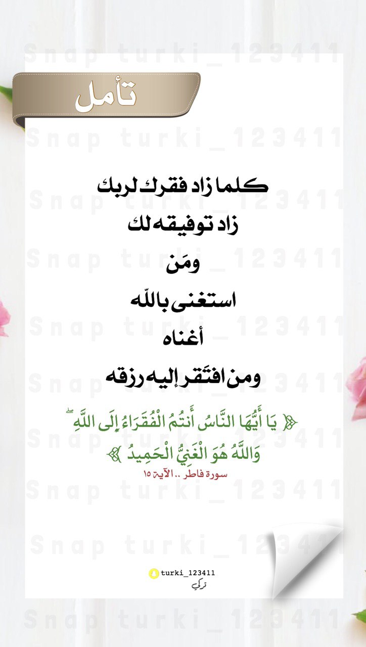 كلما زاد فقرك لربك زاد توفيقه لك، ومَن استغنى بالله أغناه، ومن افتَقر إليه رزقه.