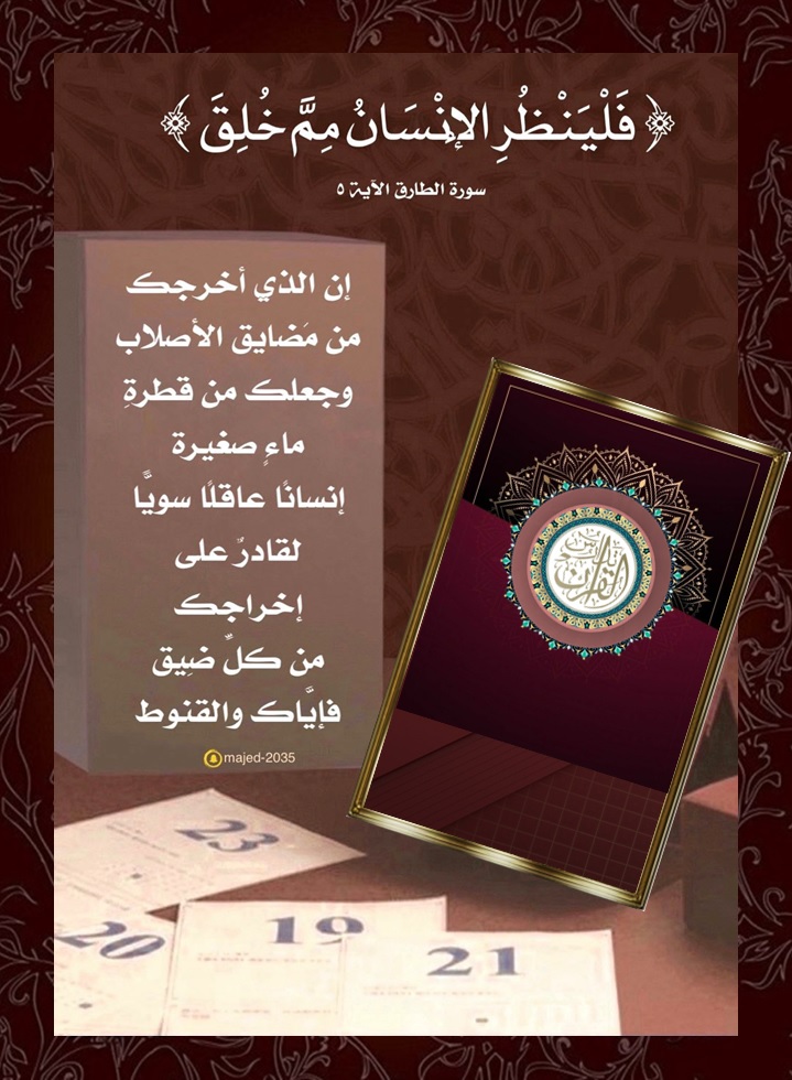 إن الذي أخرجك من مَضايق الأصلاب وجعلك من قطرة ماءٍ صغيرة إنسانًا عاقلًا سويًّا، لقادرٌ على إخراجك من كلِّ ضِيق .. فإيَّاك والقنوط.