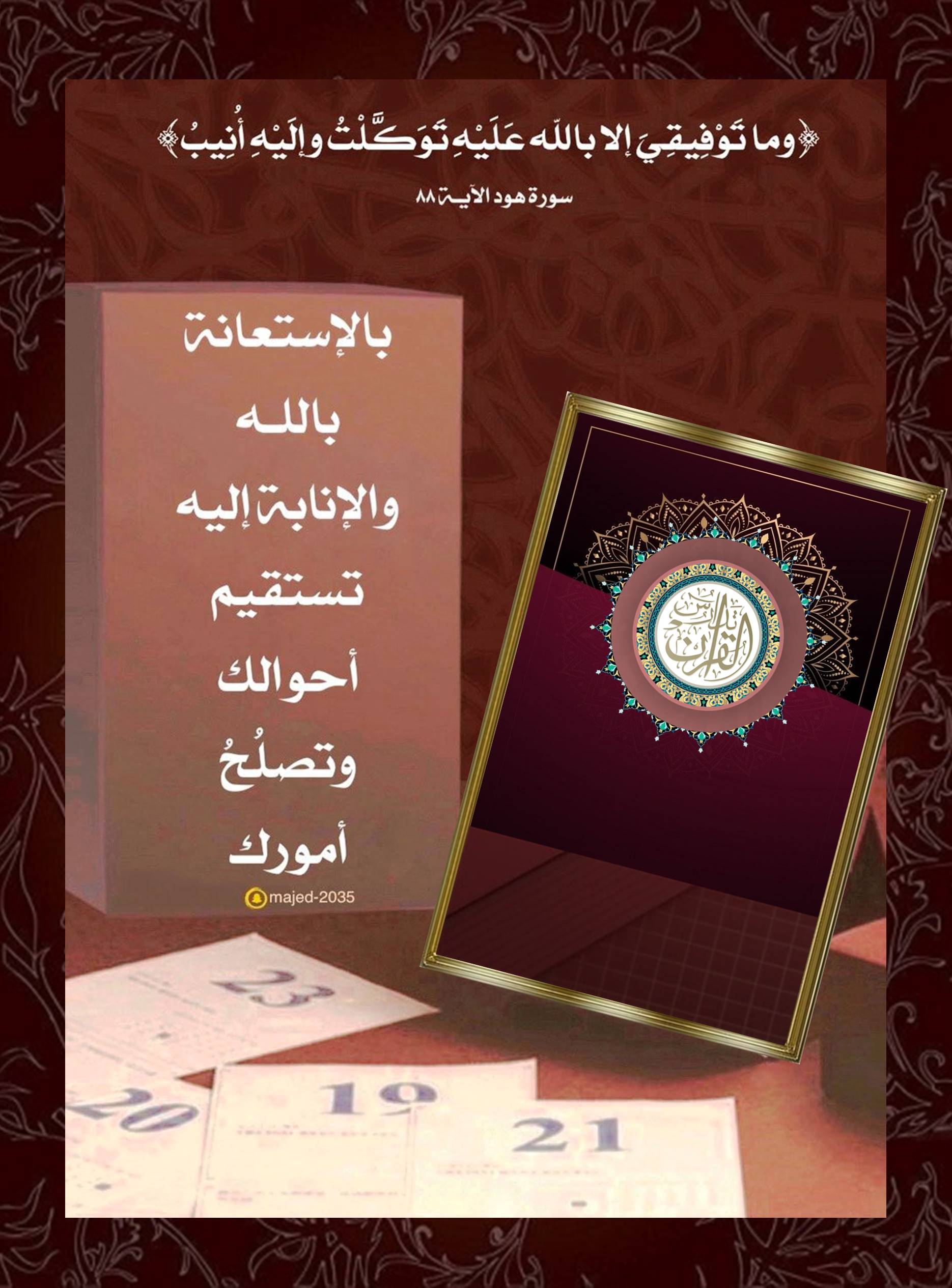 ﴿وما تَوْفِيقِيَ إلّا بالله عَلَيْهِ تَوَكَّلْتُ وإلَيْهِ أُنِيبُ﴾: