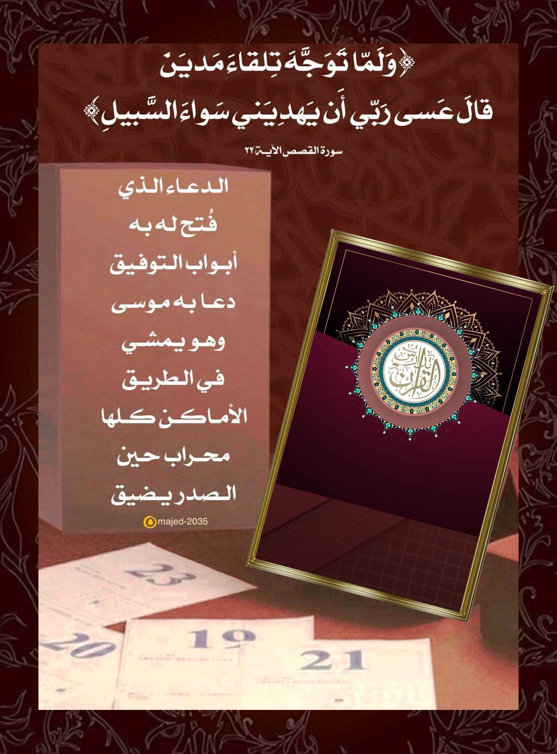 الدعاء الذي فُتح له به أبواب التوفيق دعا به موسى وهو يمشي في الطريق الأماكن كلها محراب حين الصدر يضيق.