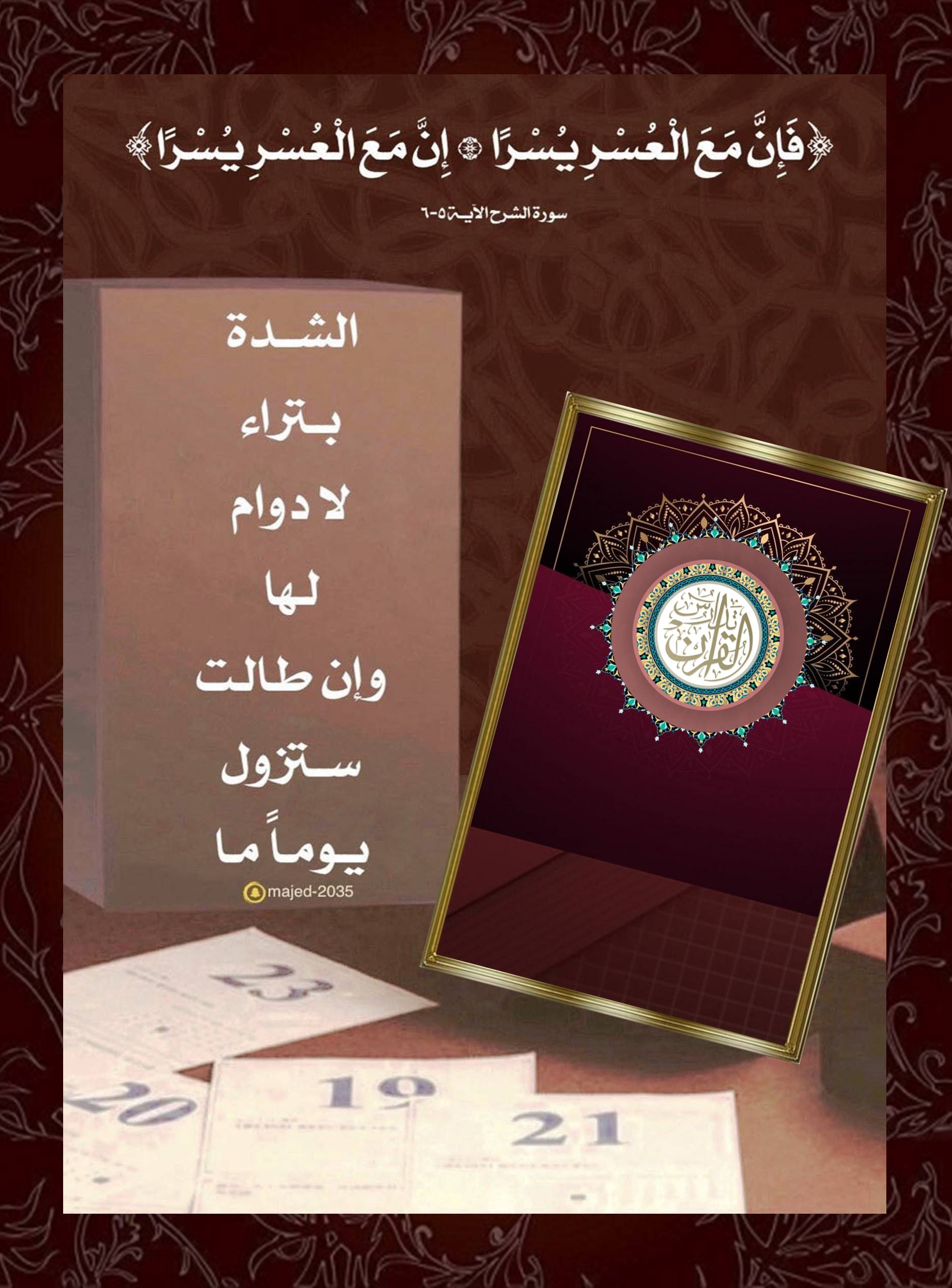 ﴿فَإِنَّ مَعَ الْعُسْرِ يُسْرًا • إِنَّ مَعَ الْعُسْرِ يُسْرًا﴾:
